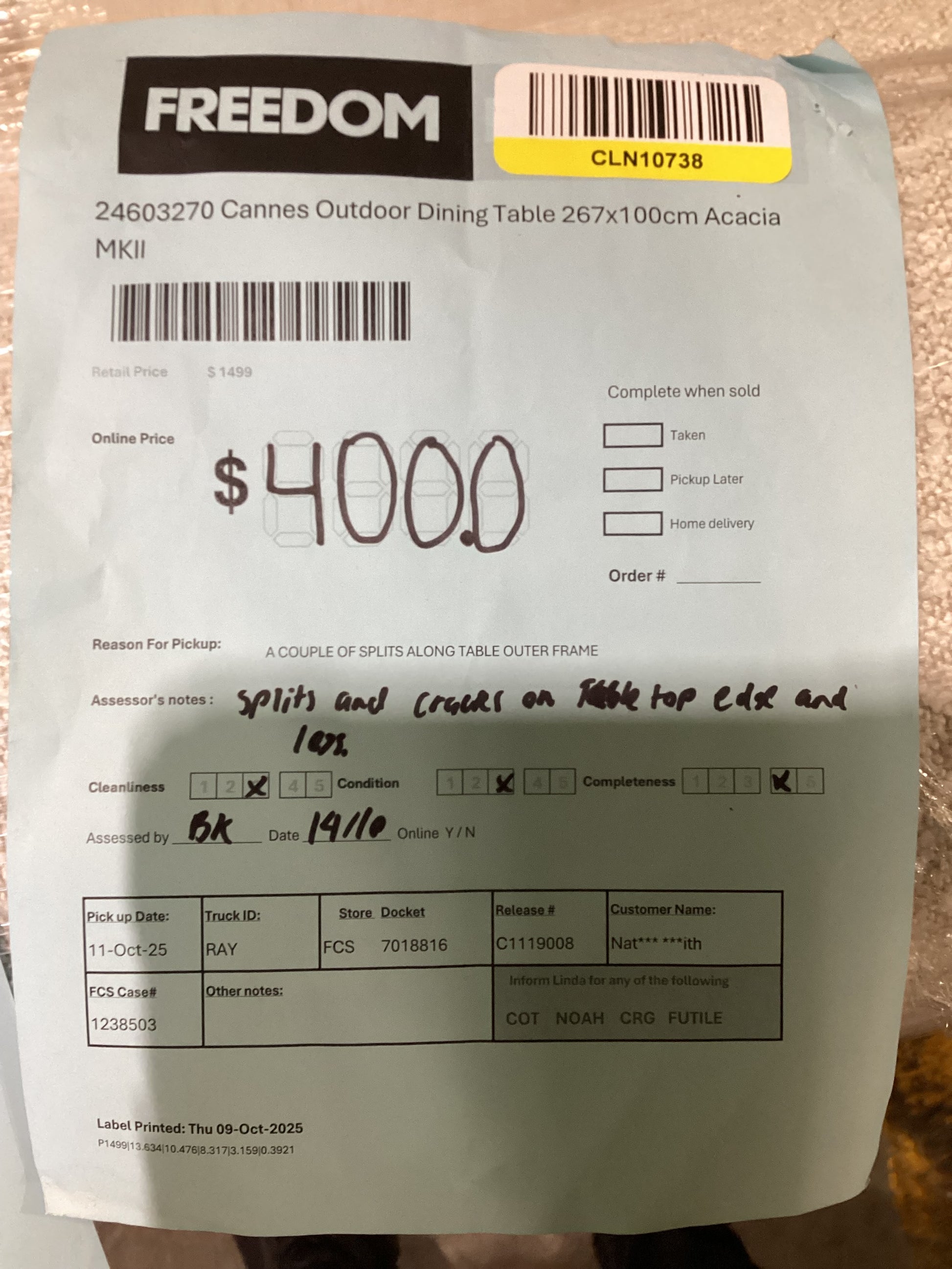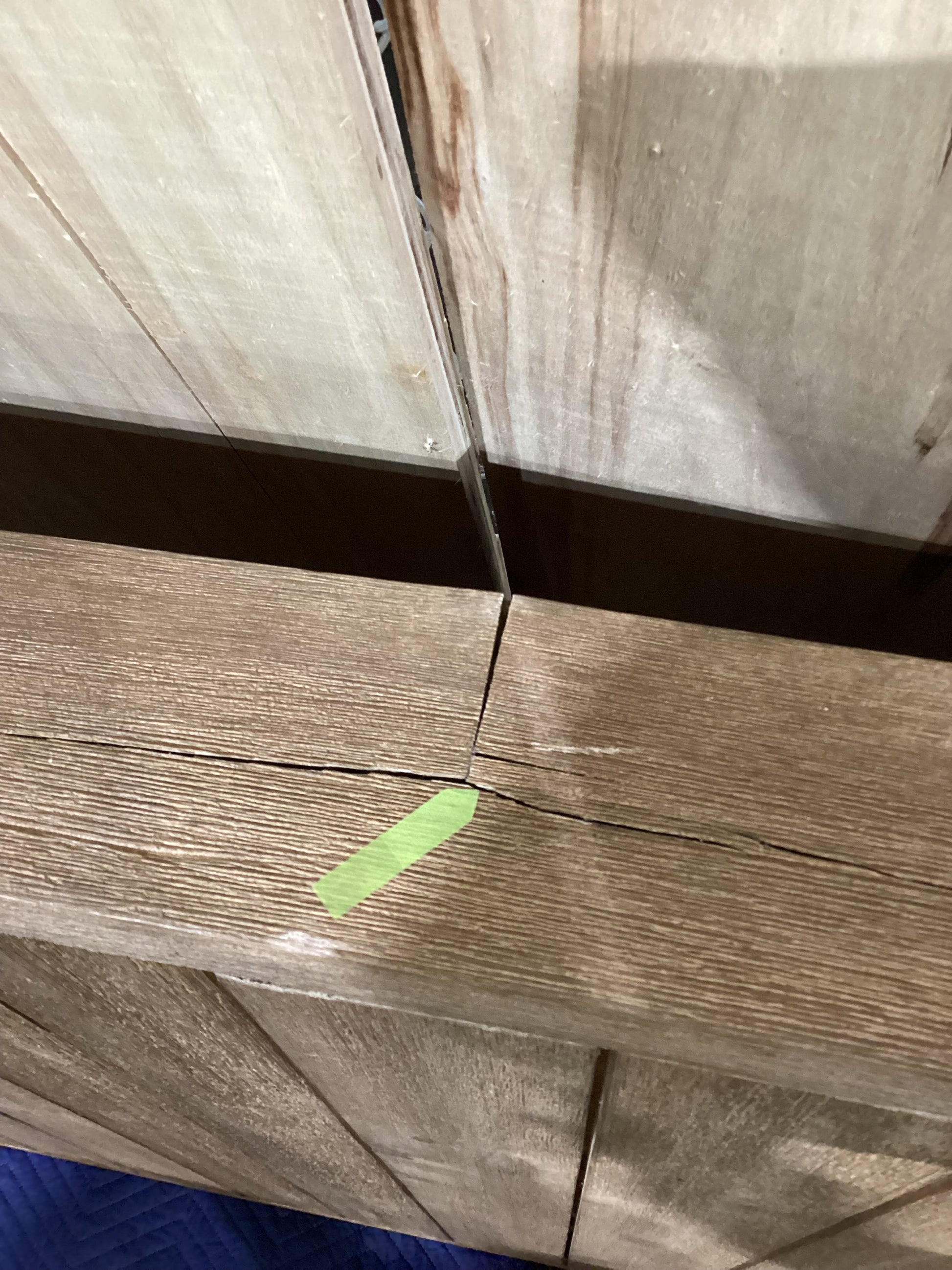 ASSESSOR NOTES: Splits and cracks on tabletop edge and legs