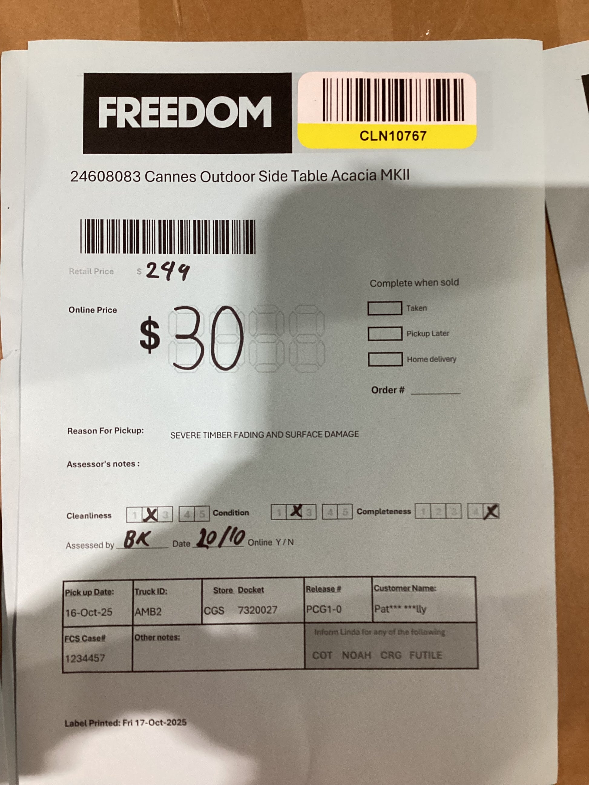 NSW CLN10767 Cannes Outdoor Side Table Acacia MKII
