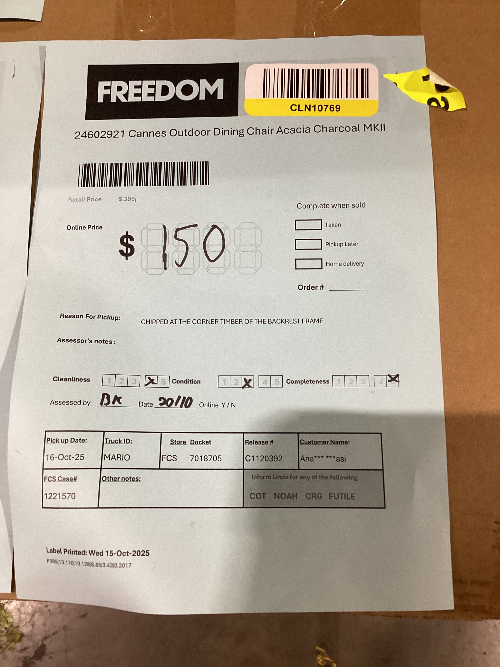 RETURN REASON:Â Chipped at the corner timber of the backrest frame