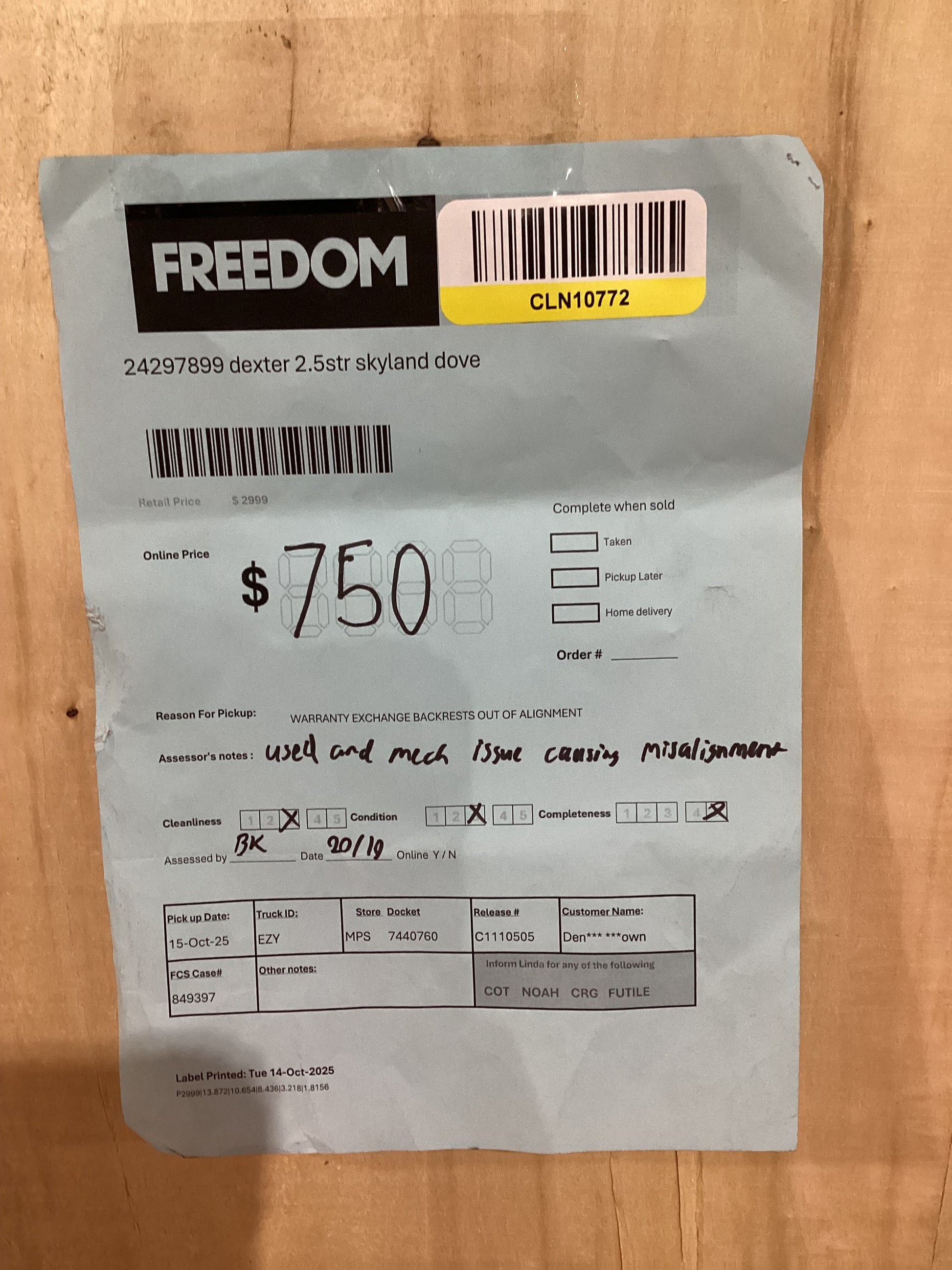 ASSESSOR NOTES: Used and mech issues causing misalignment with squeaking noises when operating