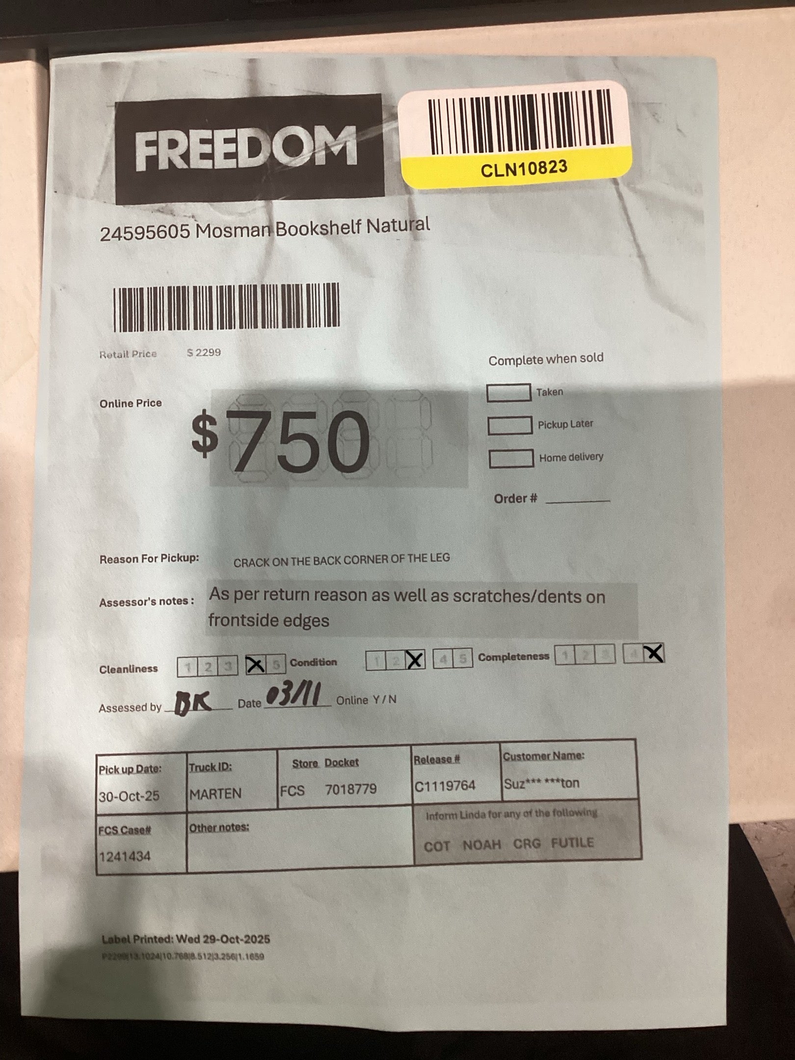 ASSESSOR NOTES: As per return reason as well scratches/dents on frontside edges