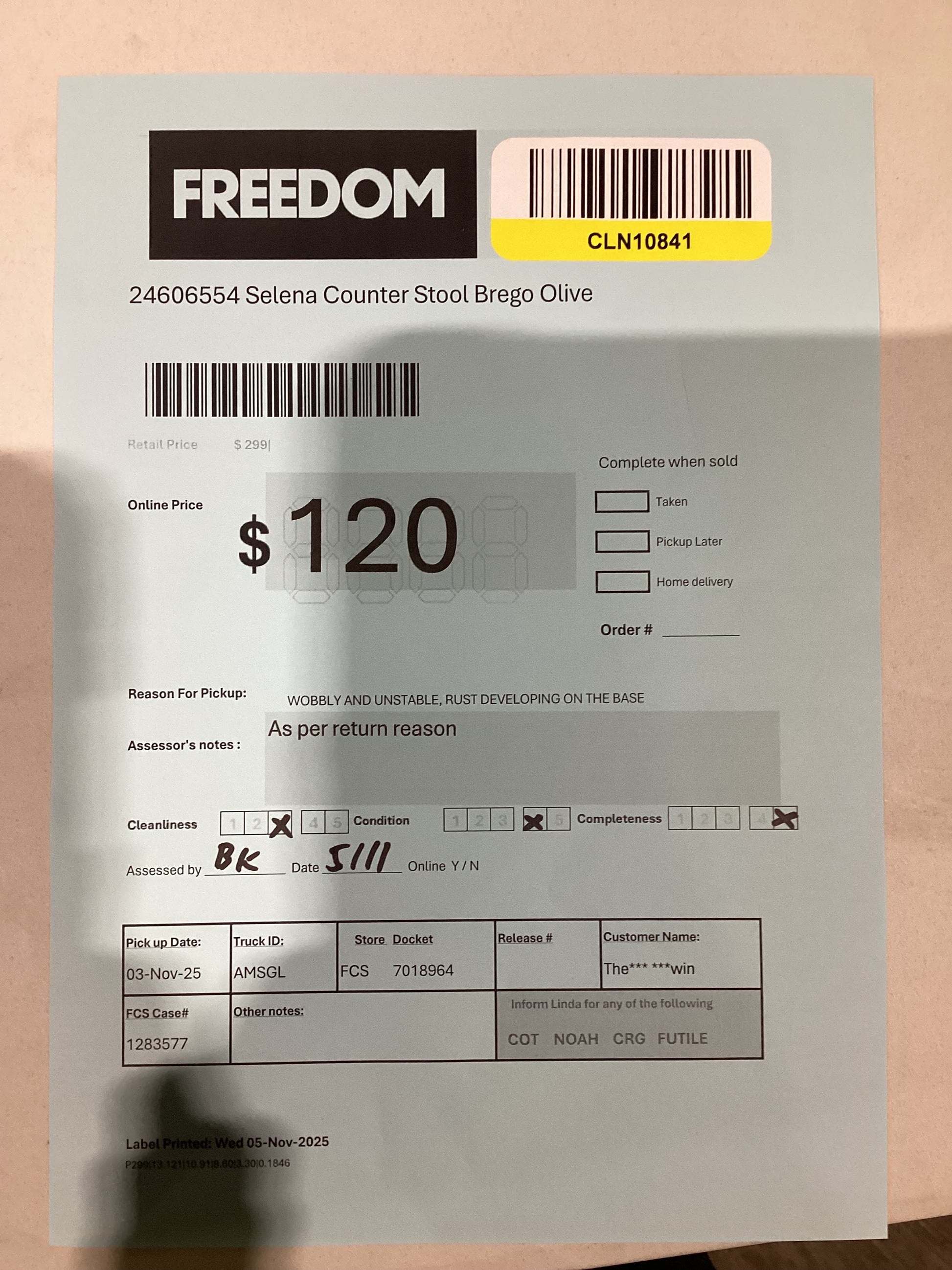 RETURN REASON:Â Wobbly and unstable, rust developing on base