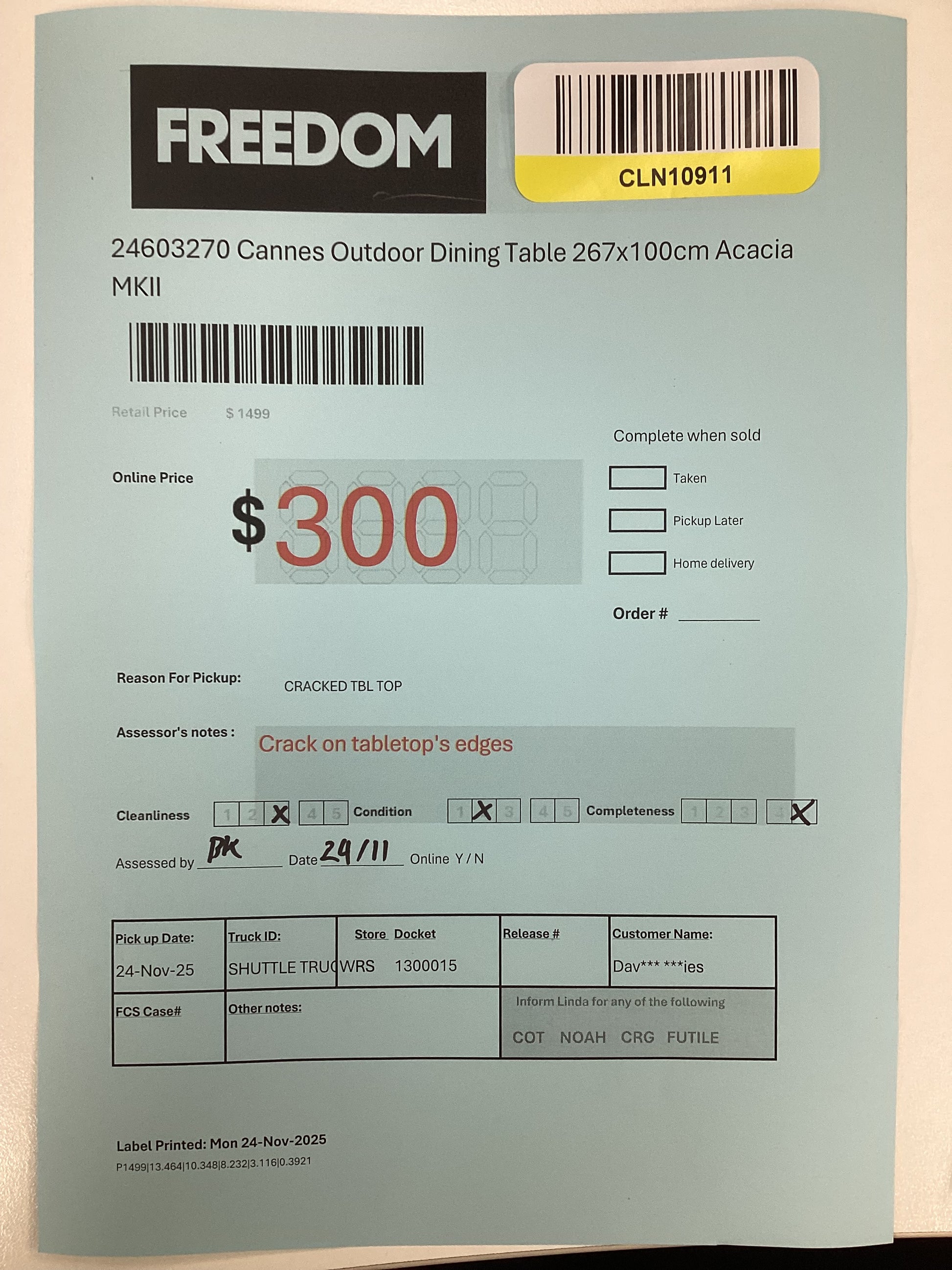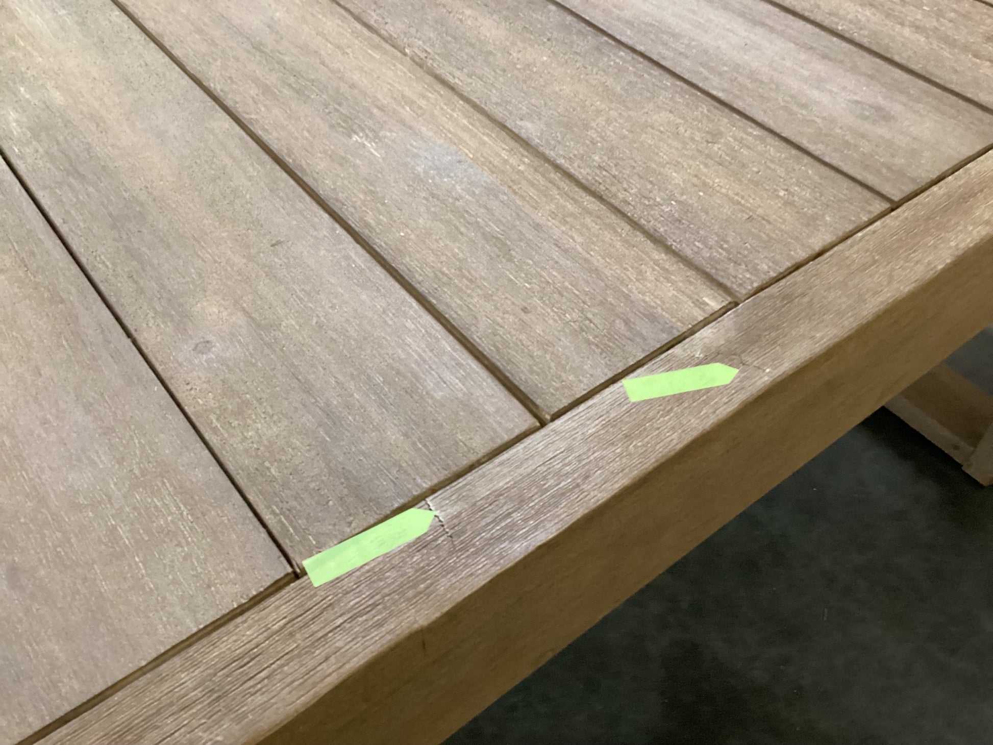 ASSESSOR NOTES: Cracks on the tabletop's edges causing last panel on side to lift as well