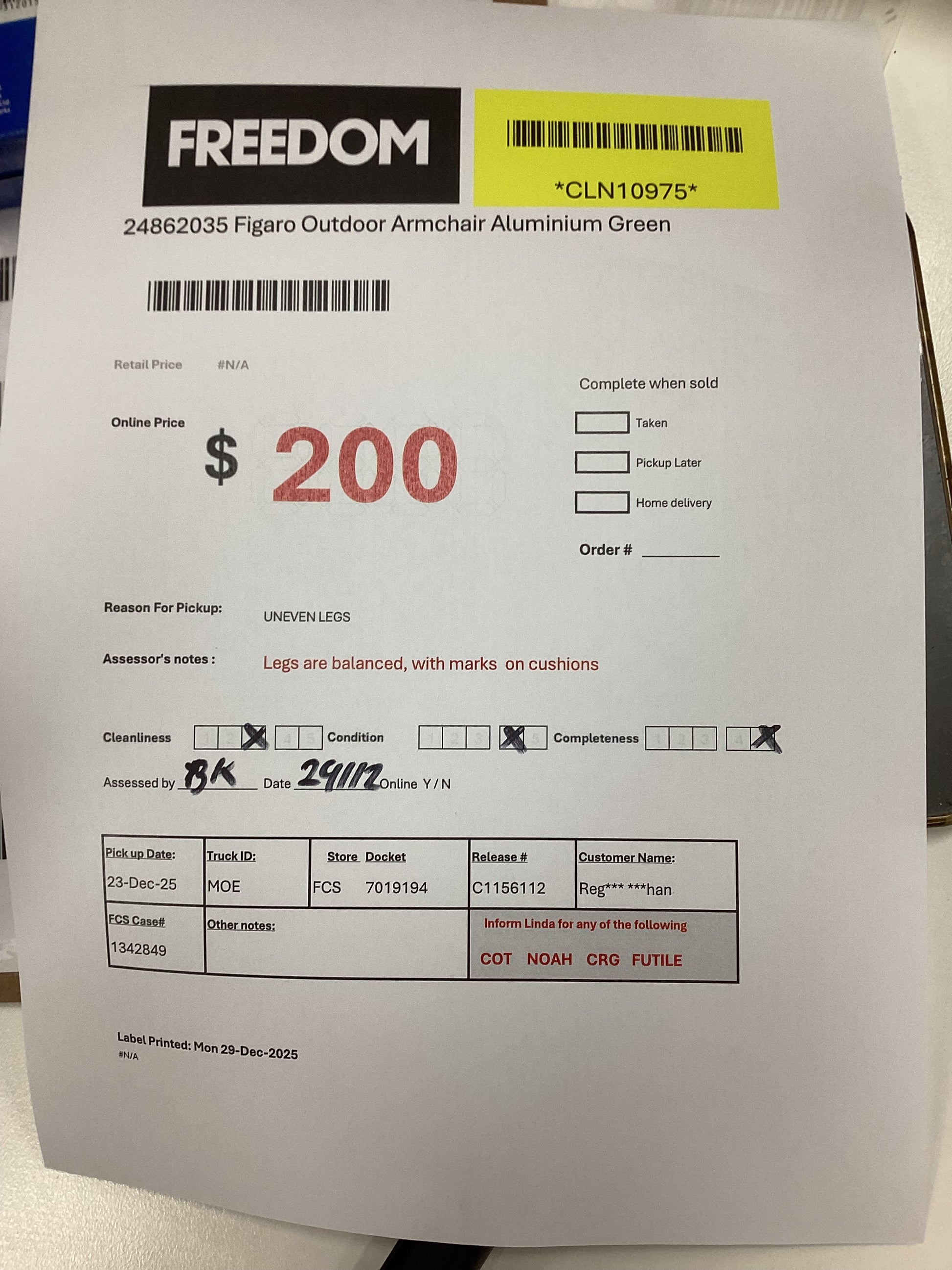 RETURN REASON:Â Uneven legs