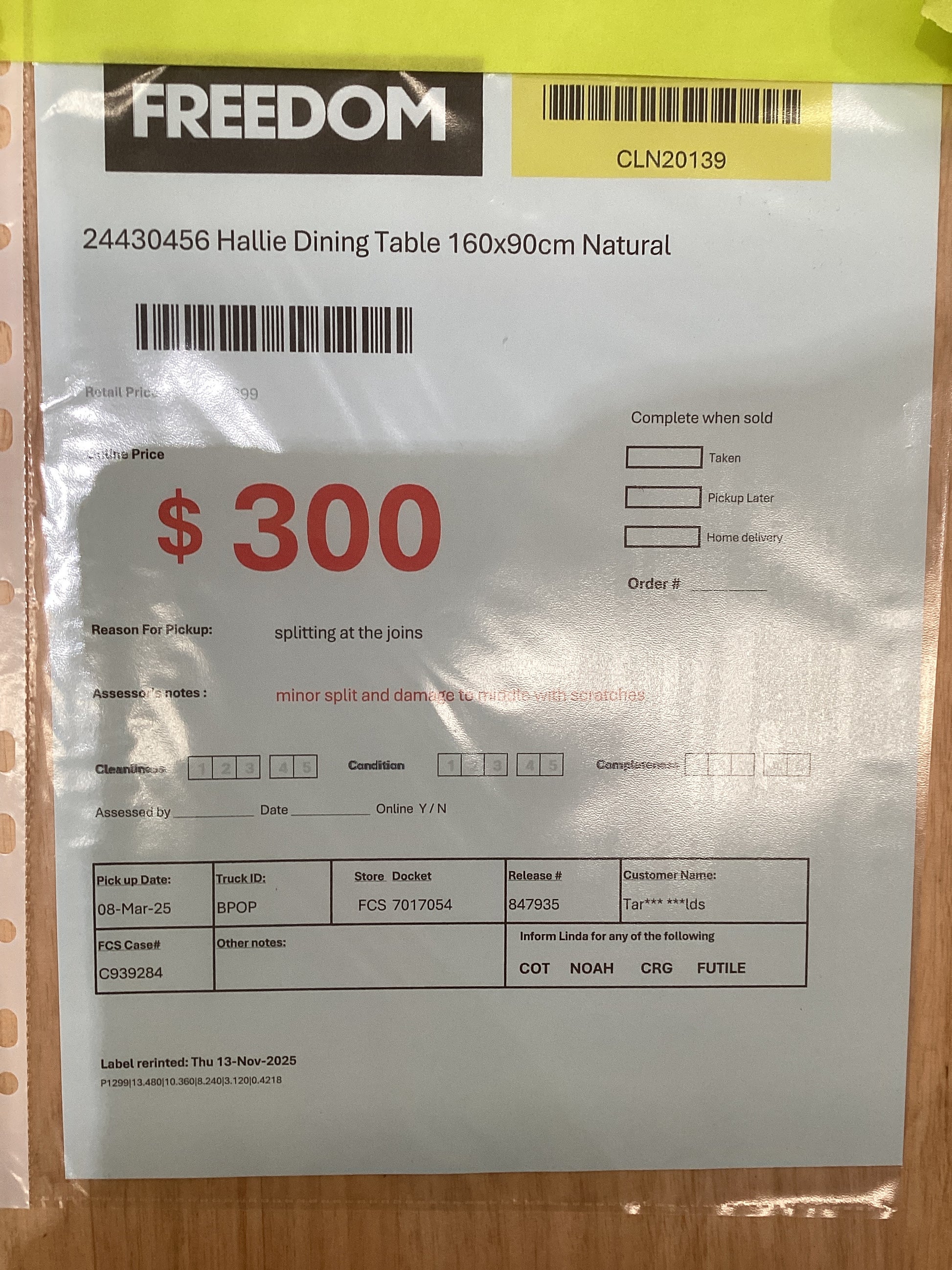 NSW CLN20139 Hallie Dining Table 160x90cm Natural