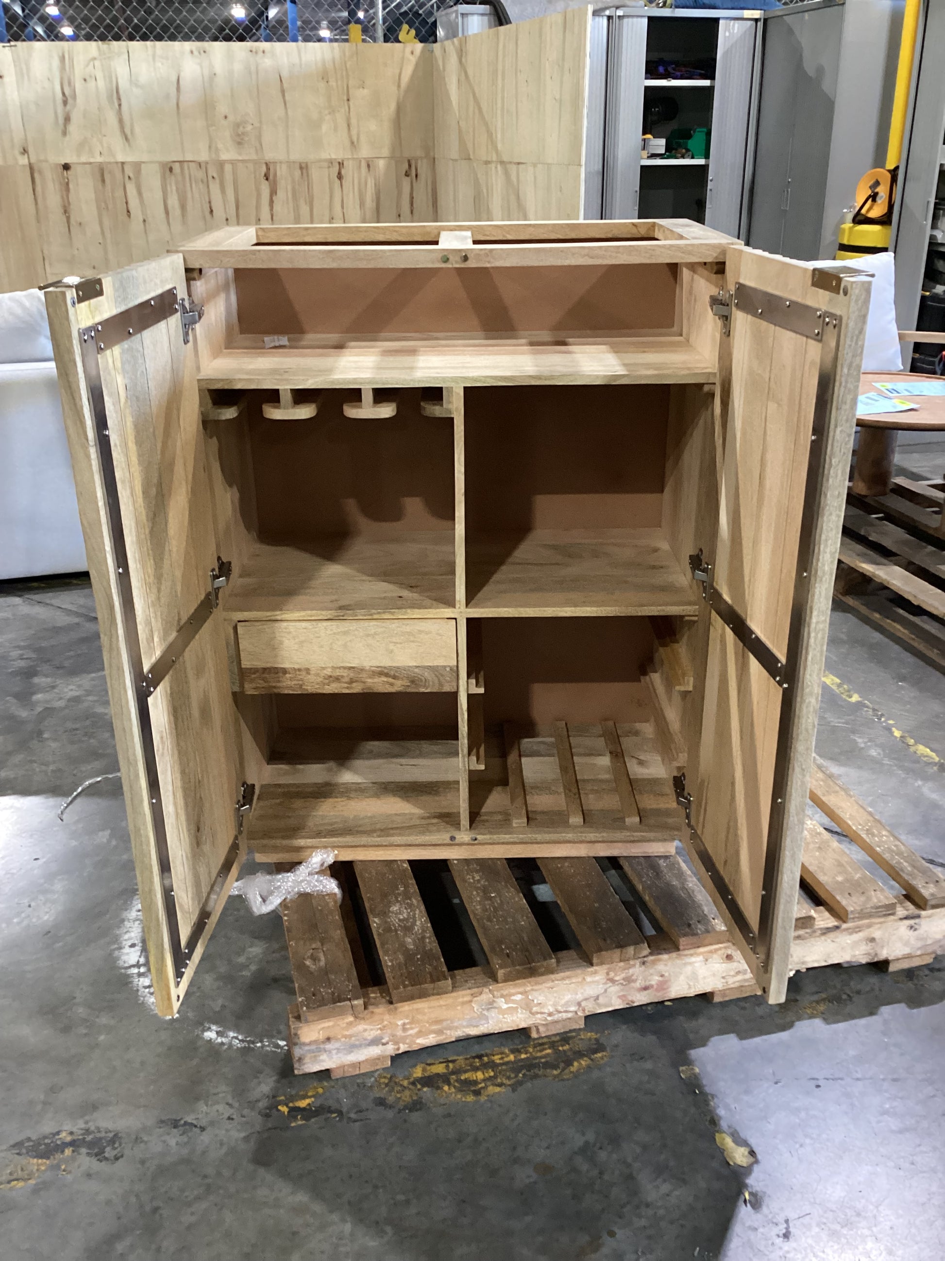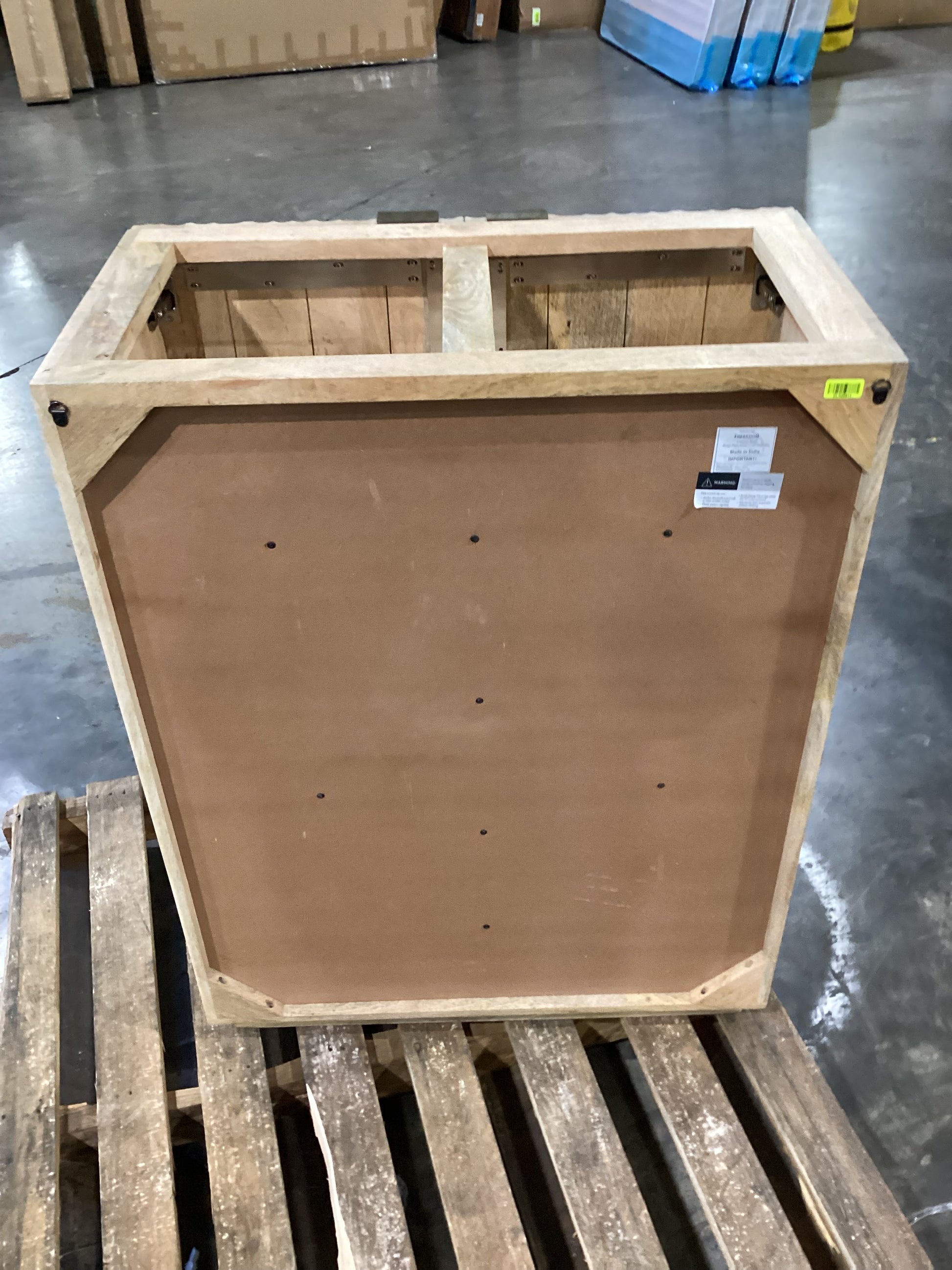 ASSESSOR NOTES: Missing shelves in bottom left of cabinet alongside no top for cabinet