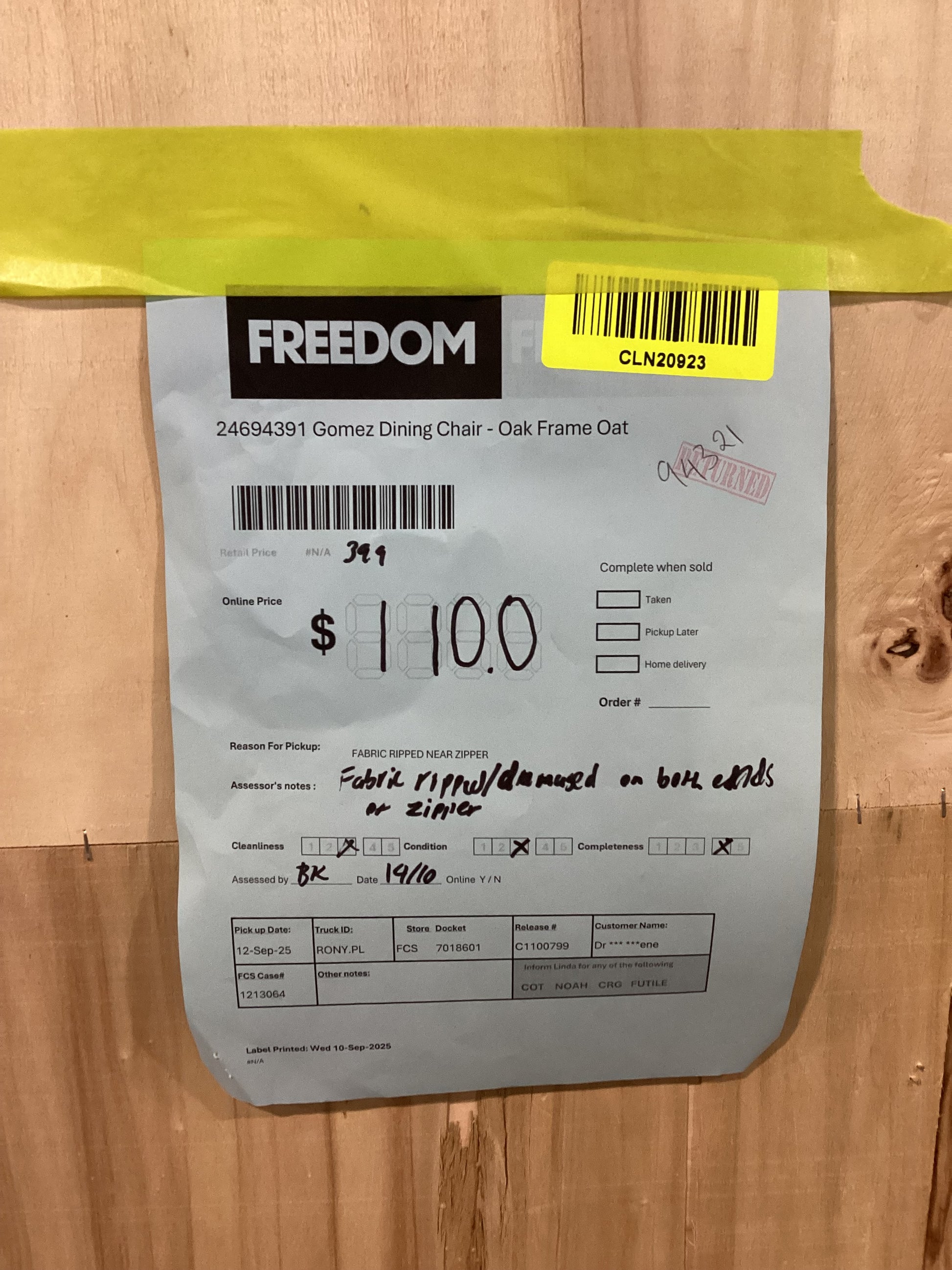 ASSESSOR NOTES: Fabric ripped/damaged on both ends of zippers