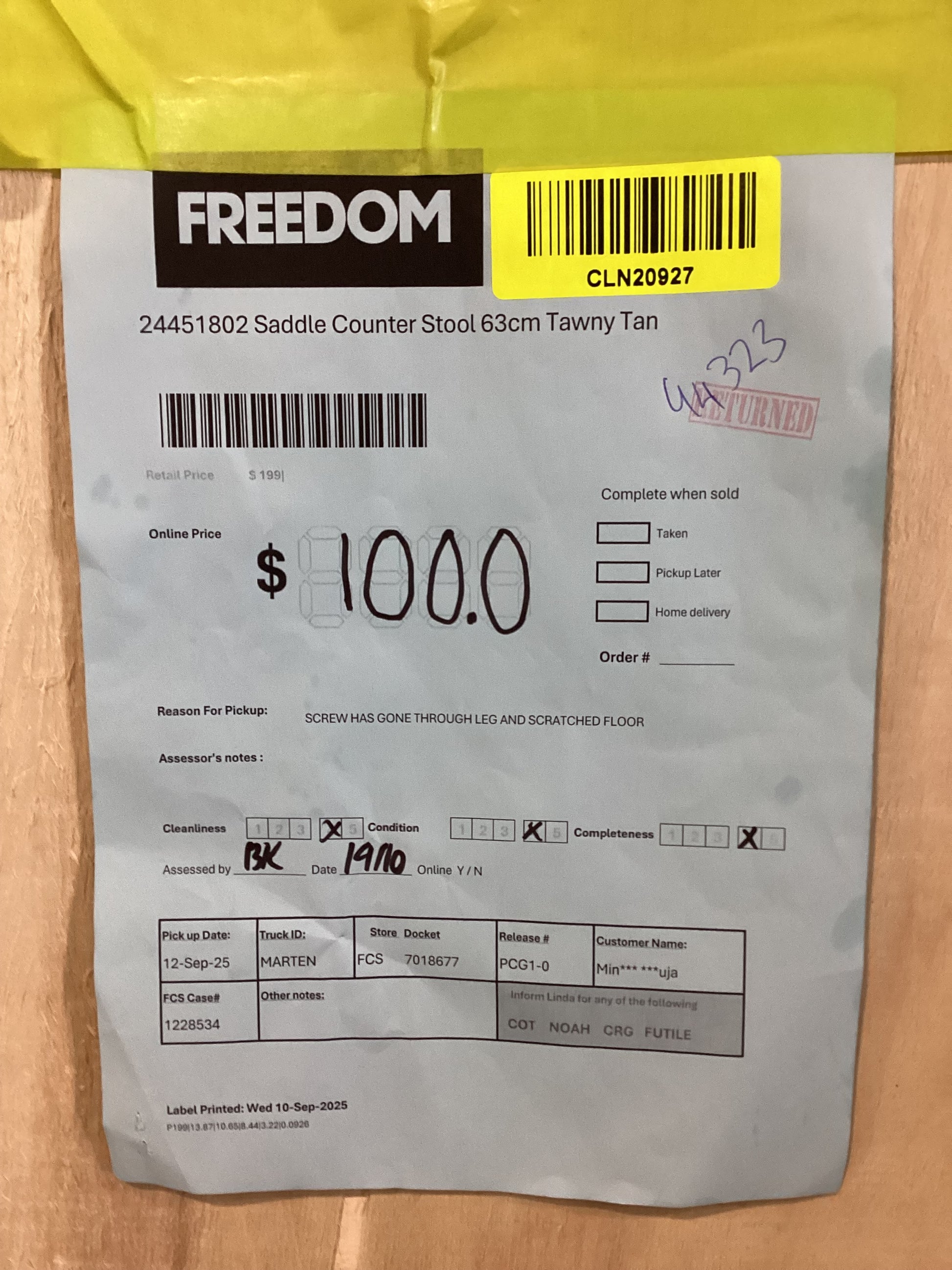 RETURN REASON:Â Screws for the legs feet gone through and scratching floor