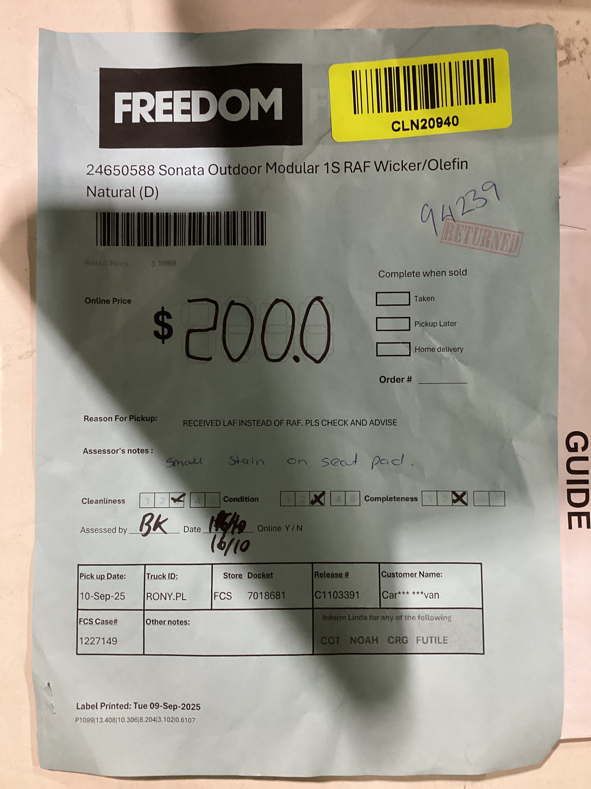 NSW CLN20940 Sonata Outdoor Modular 1S RAF Wicker/Olefin Natural