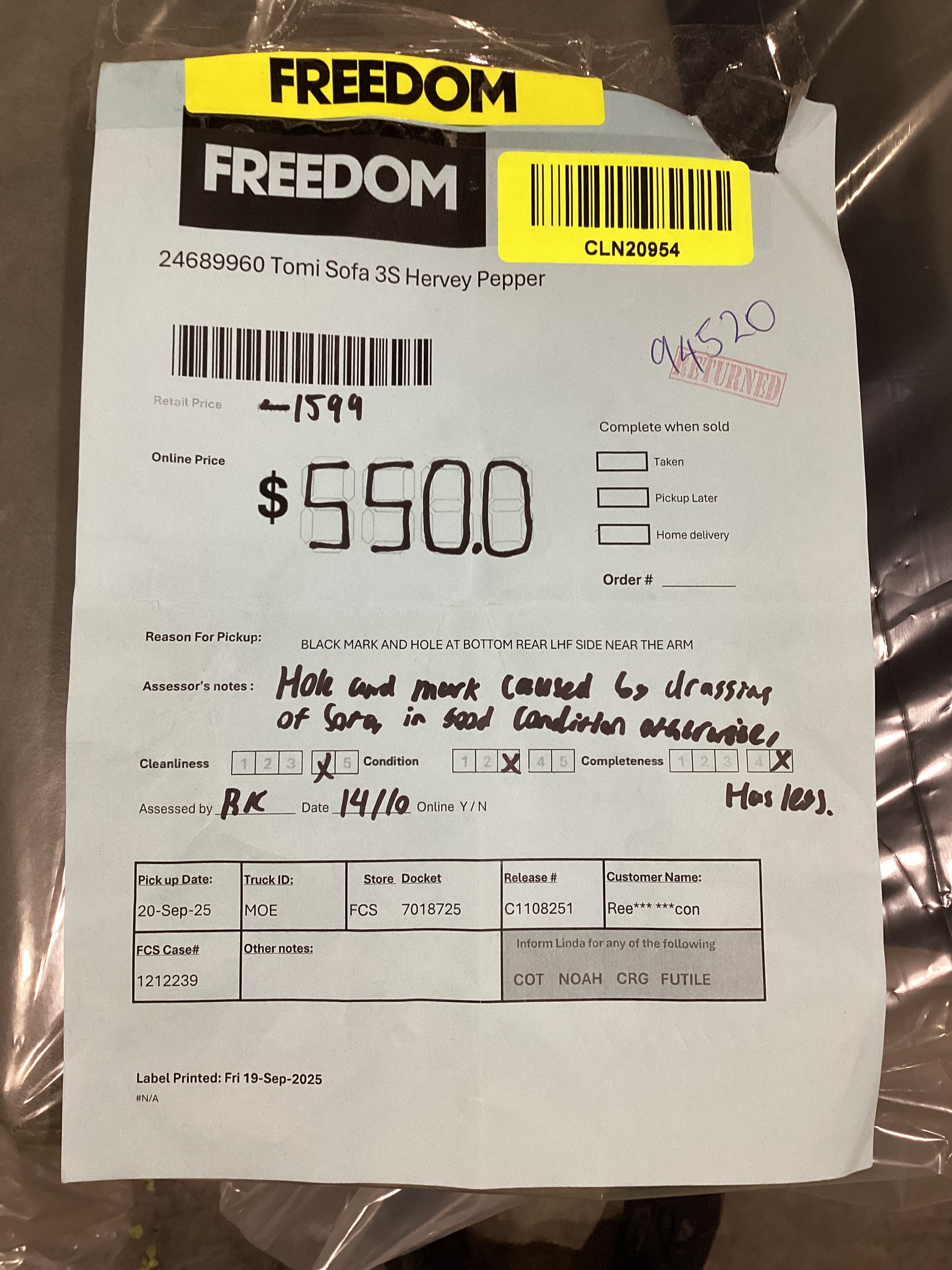 NSW CLN20954 Tomi Sofa 3S Hervey Pepper