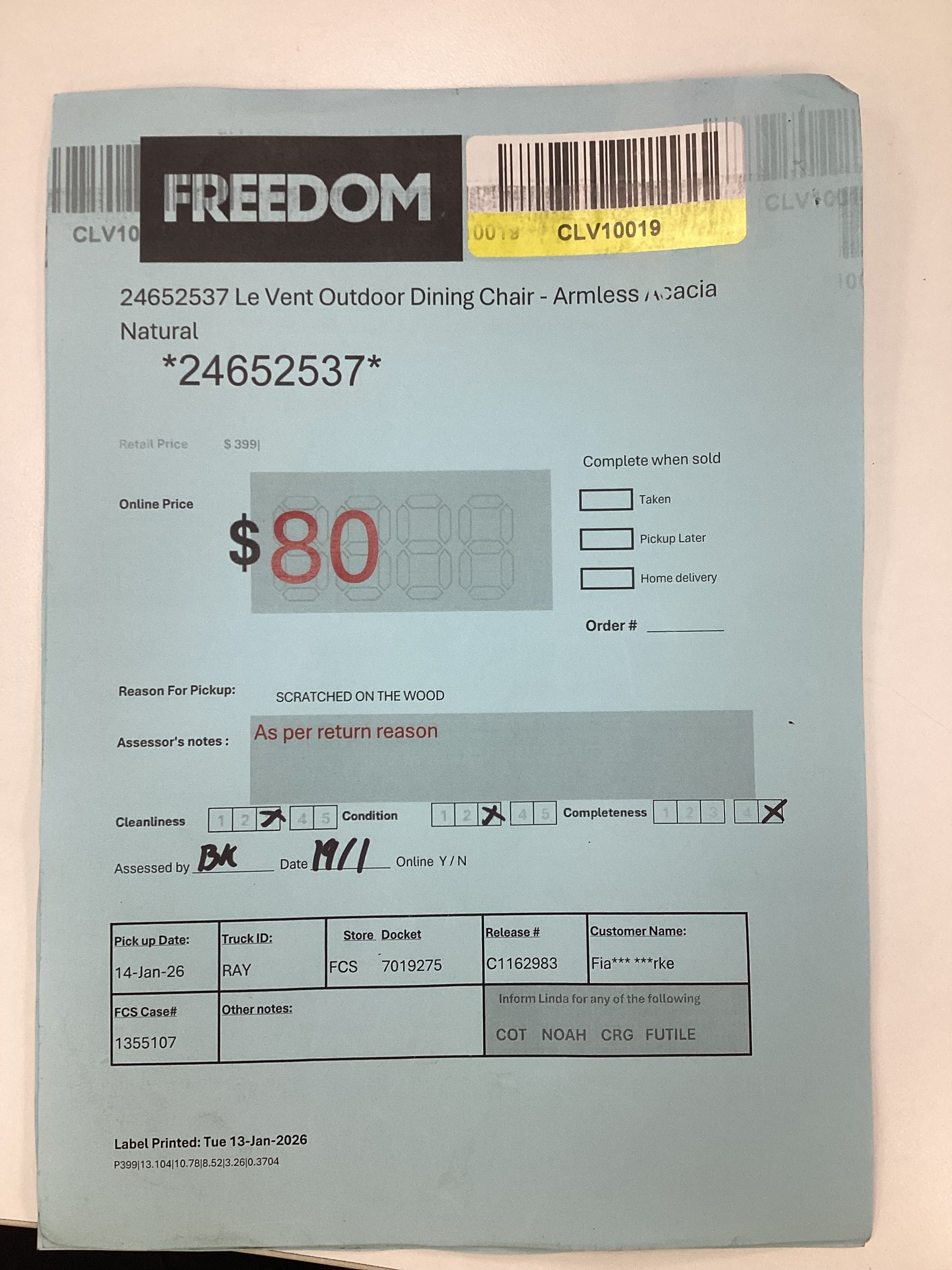 RETURN REASON:Â Scratched on the wood