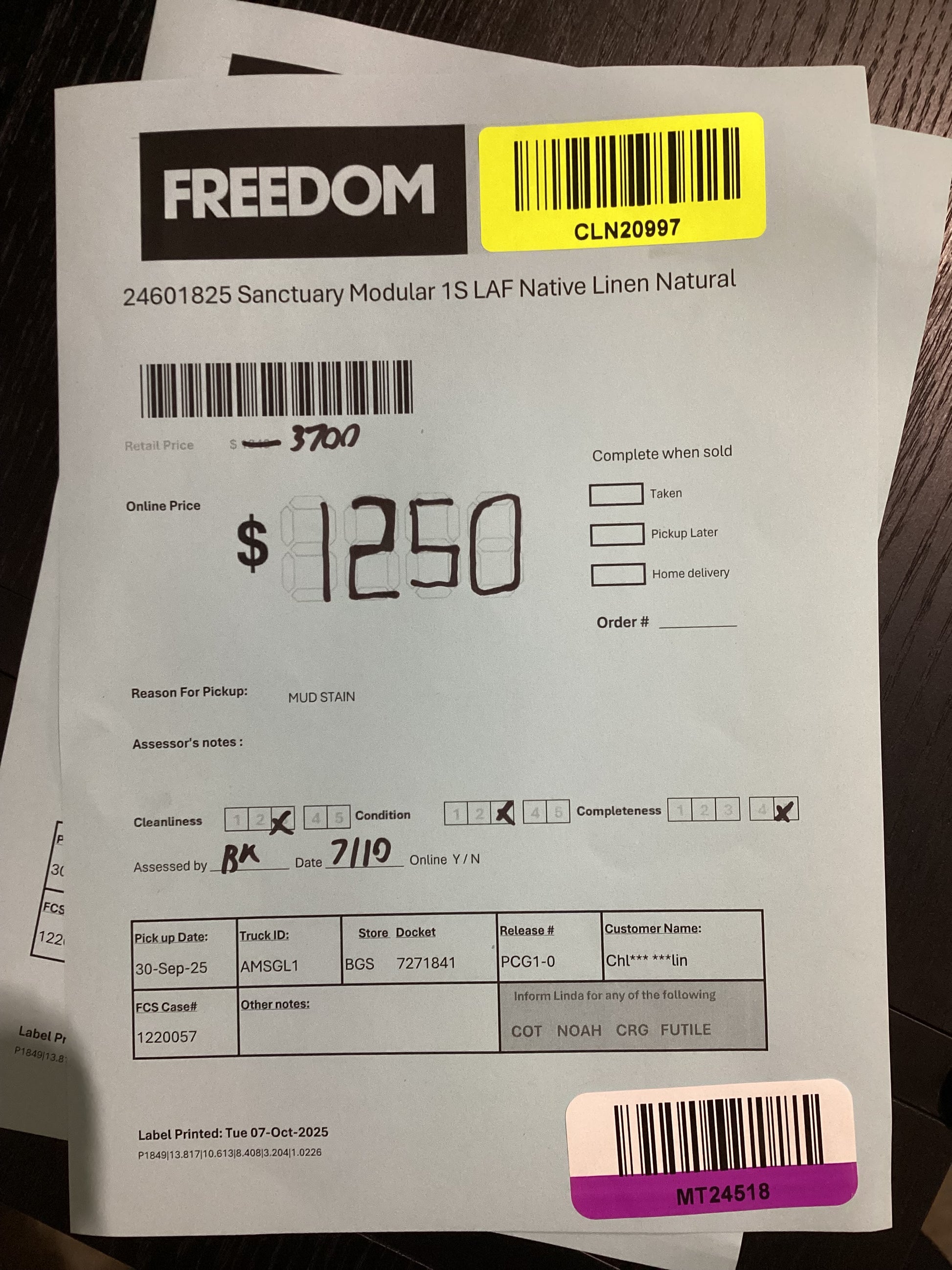 NSW MT24518 Sanctuary Modular 1s LAF+1S RAF Native Linen Natural
