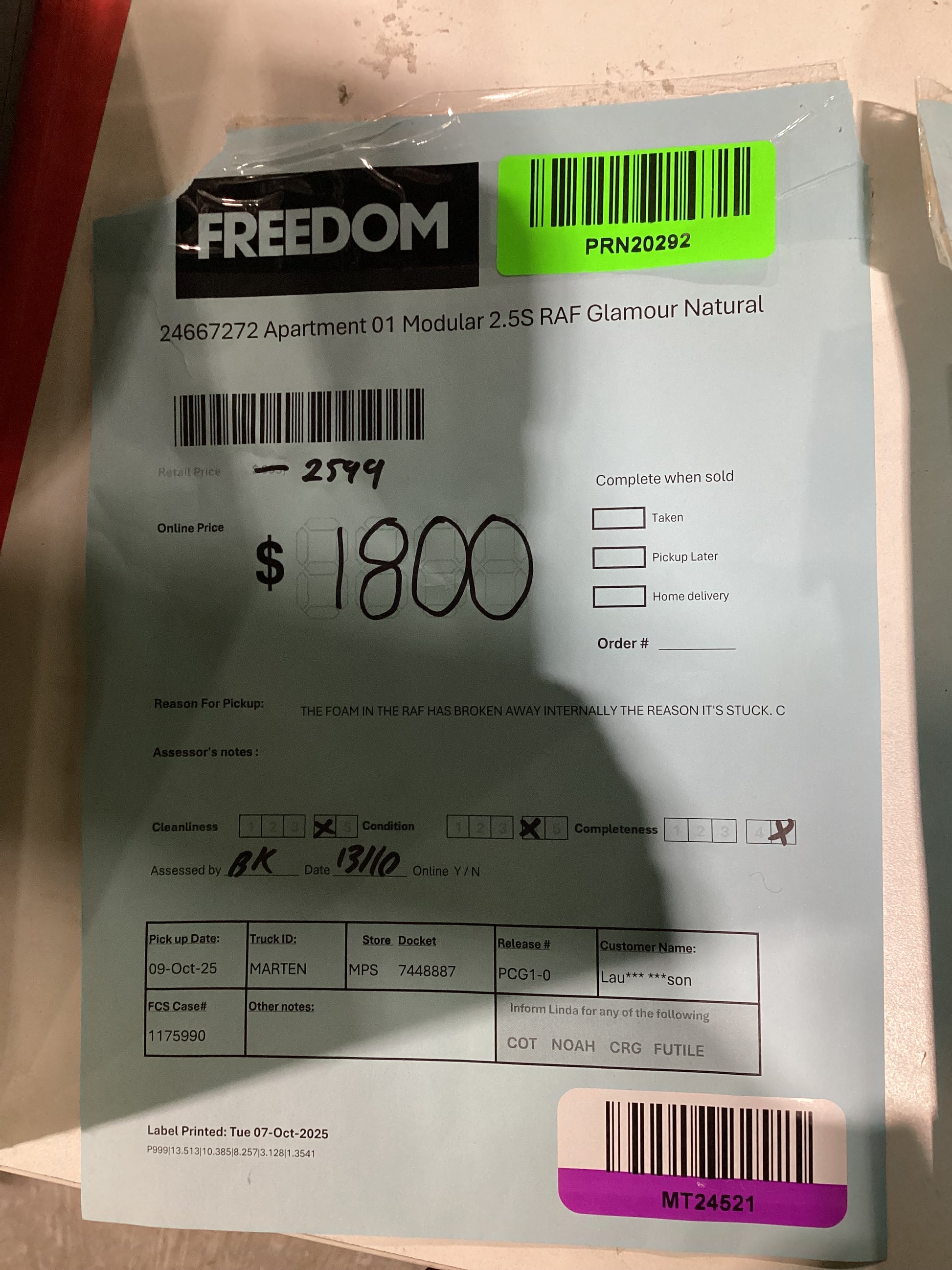 NSW MT24521 Apartment Modular Sofa 2.5S RAF + LAF Chaise + Ottoman Glamour Natural