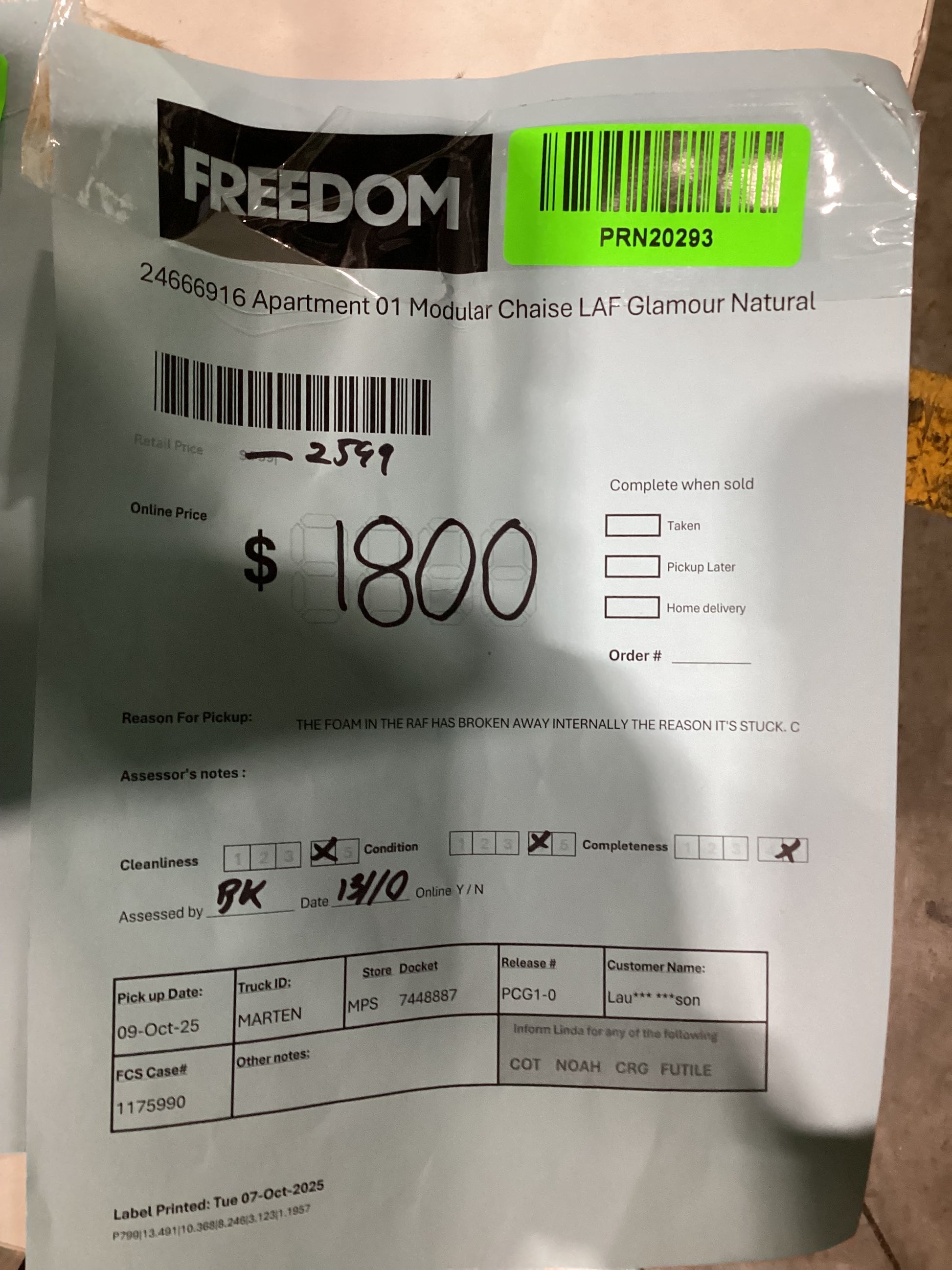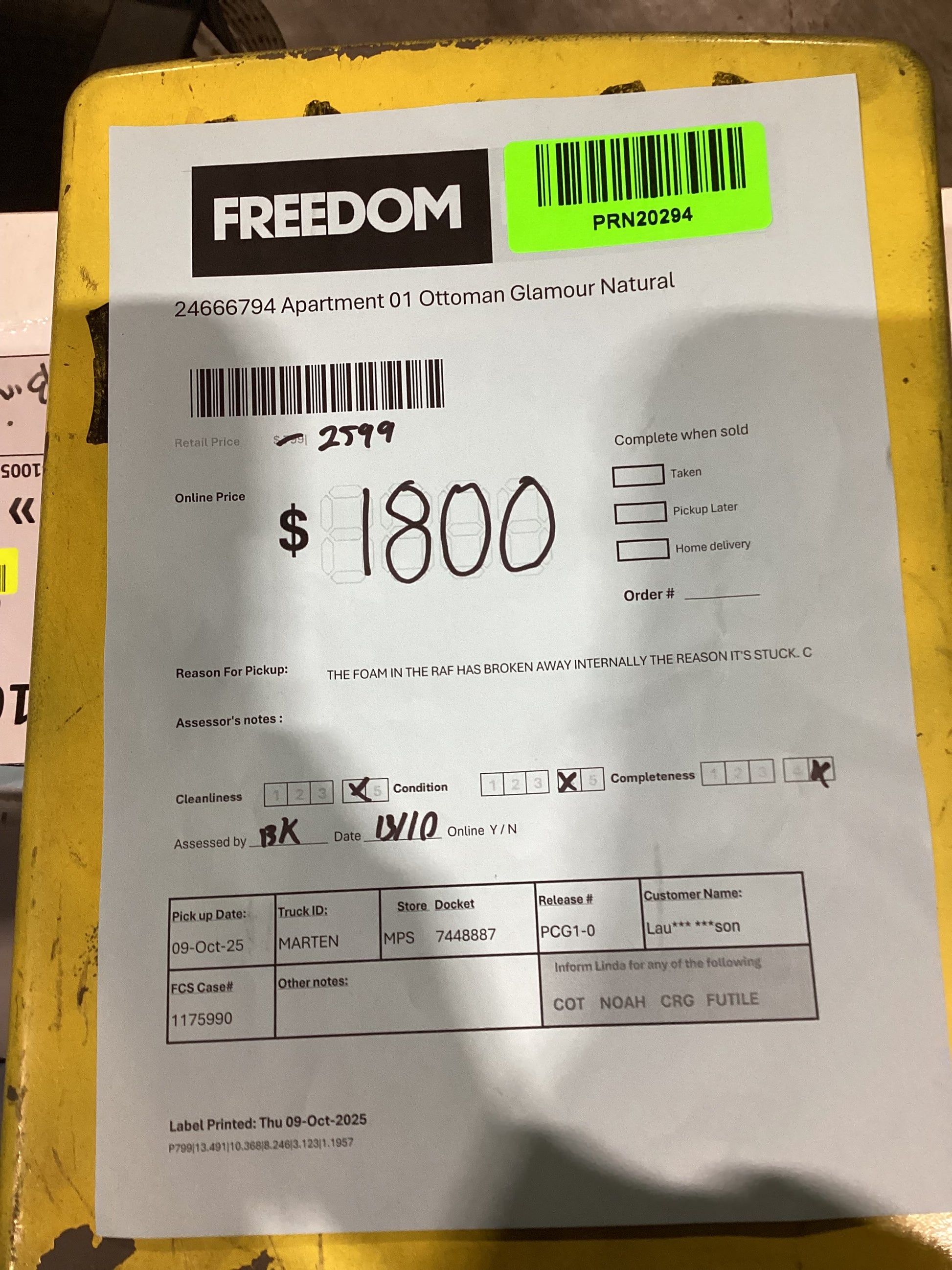 RETURN REASON:Â The foam in the RAF hsa broken away internally