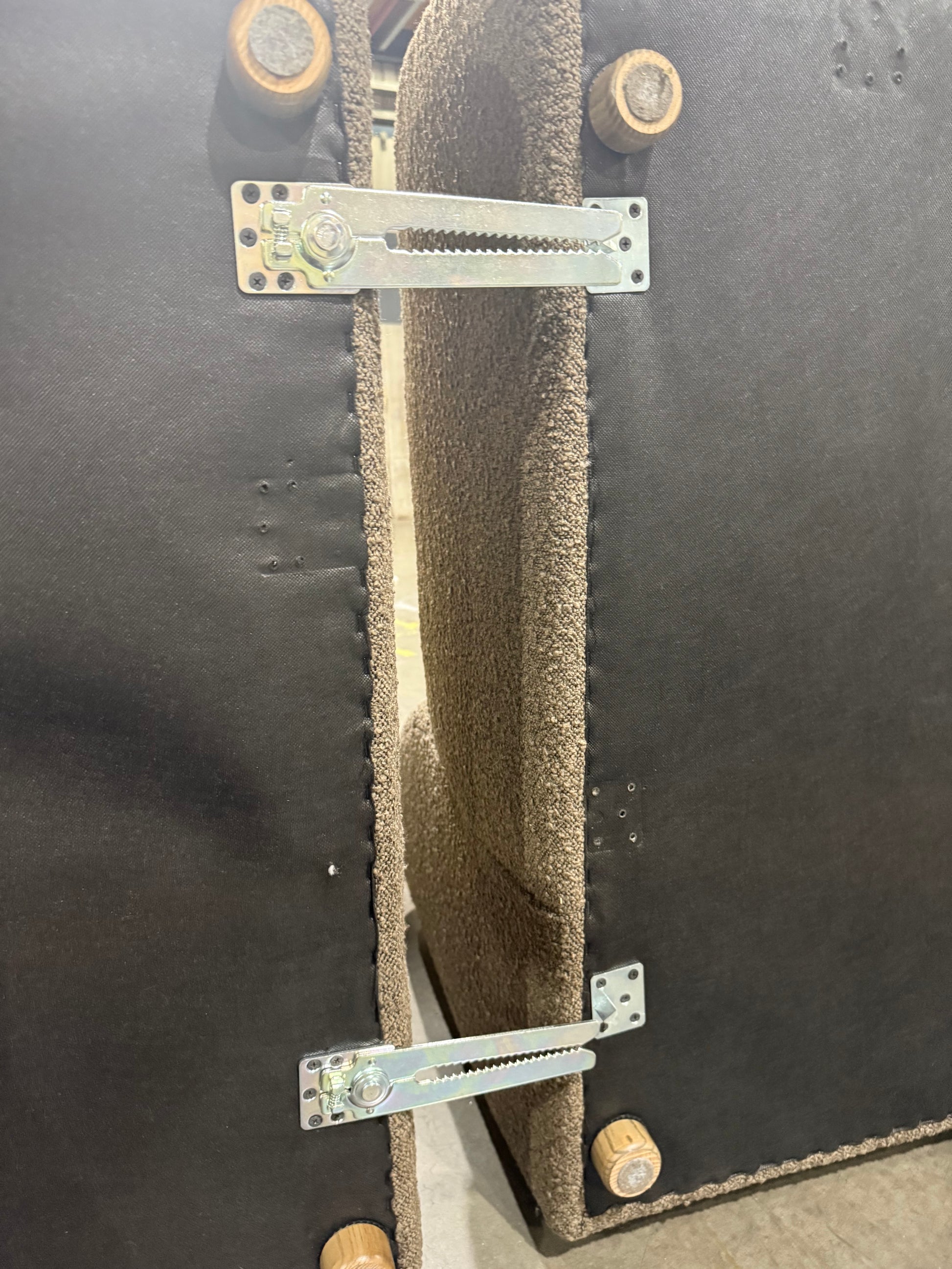 ASSESSOR NOTES: Manufacturing defect caused incorrect position and white fabric is a non issue as they are barely noticible on back. Clips were moved to make it functional