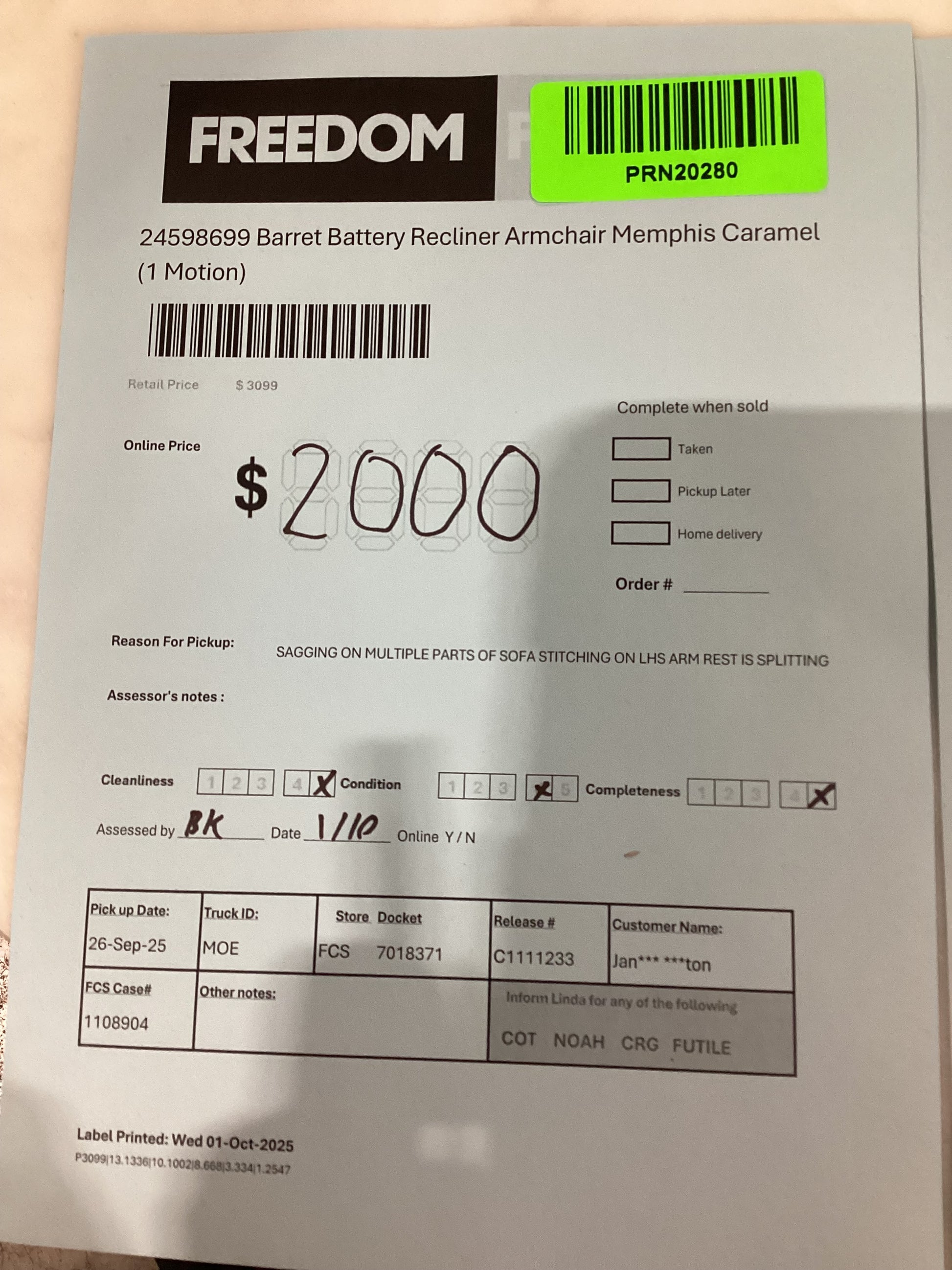 RETURN REASON:Â Sagging on multiple parts of sofa