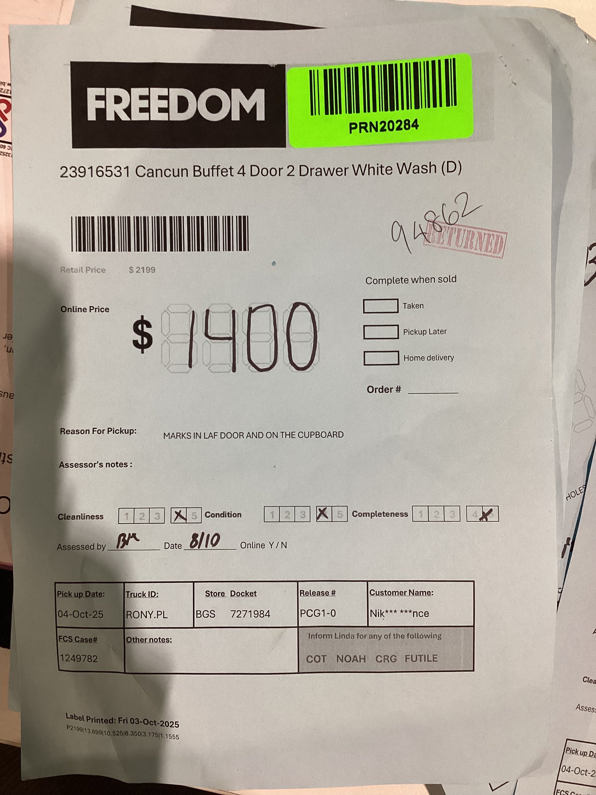 ASSESSOR NOTES: No visble mark on the door but a dent on tabletop