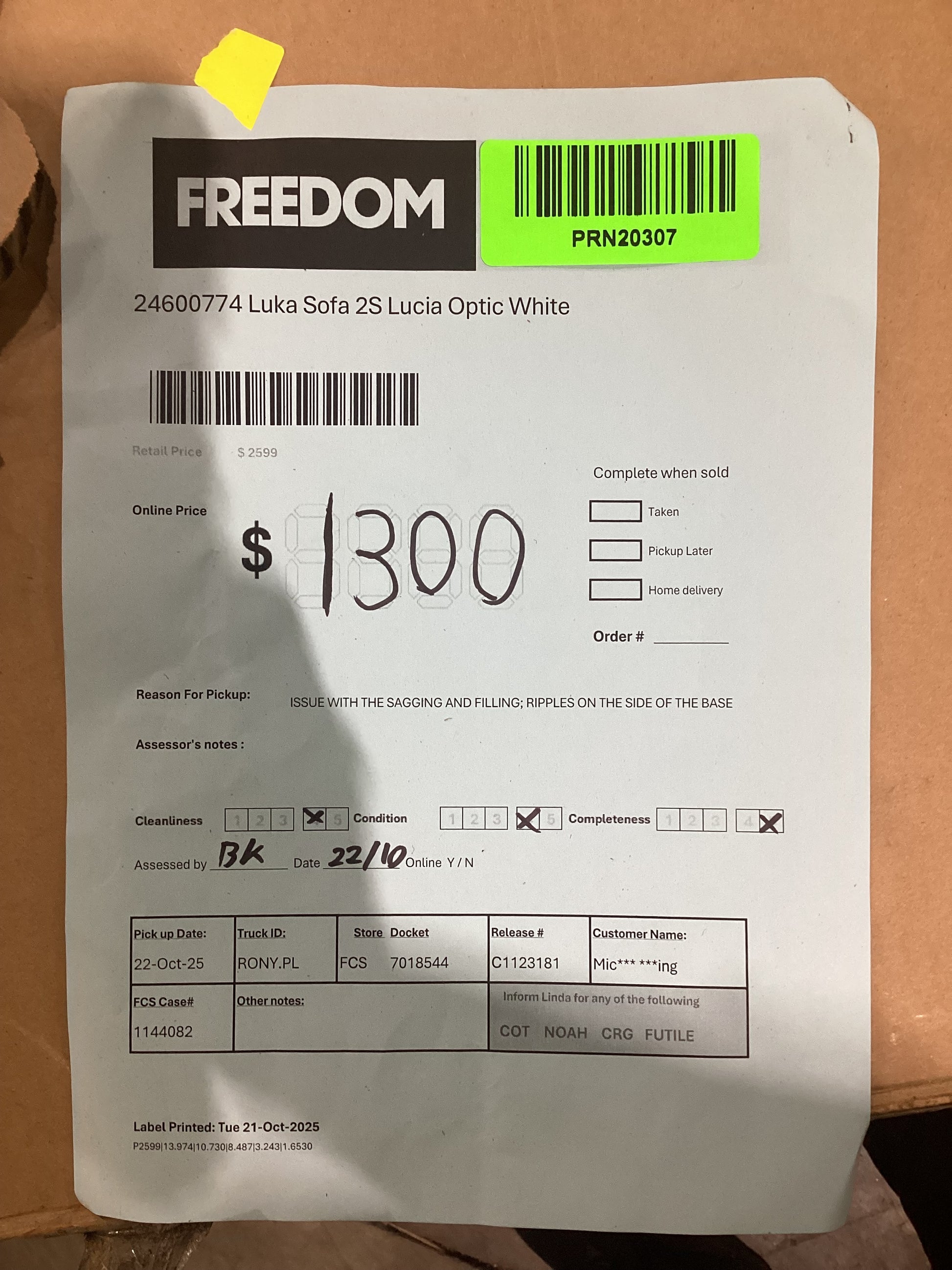 NSW PRN20307 Luka Sofa 2S Lucia Optic White