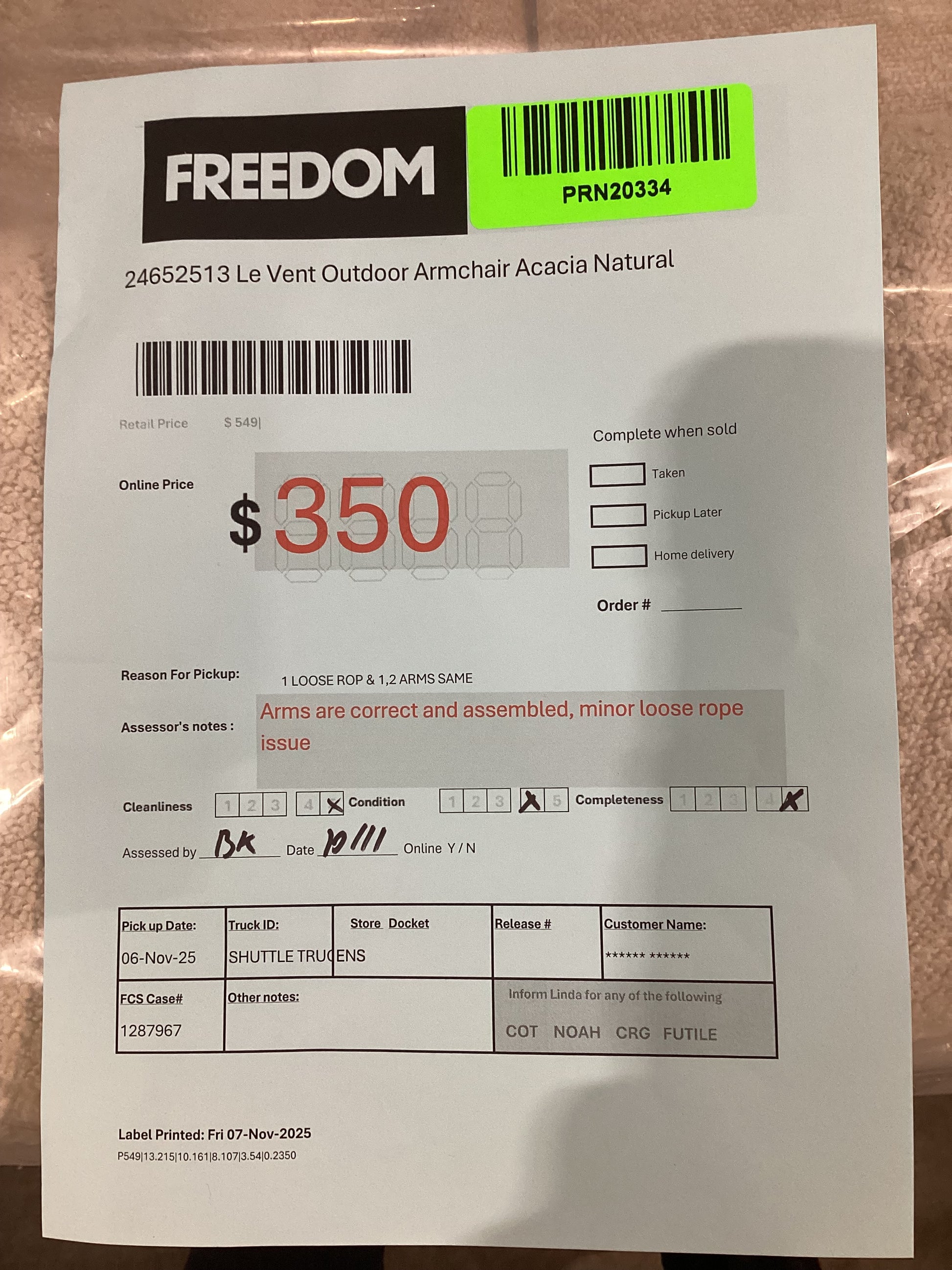 RETURN REASON:Â 1 Loose Rope and arms are incorrect