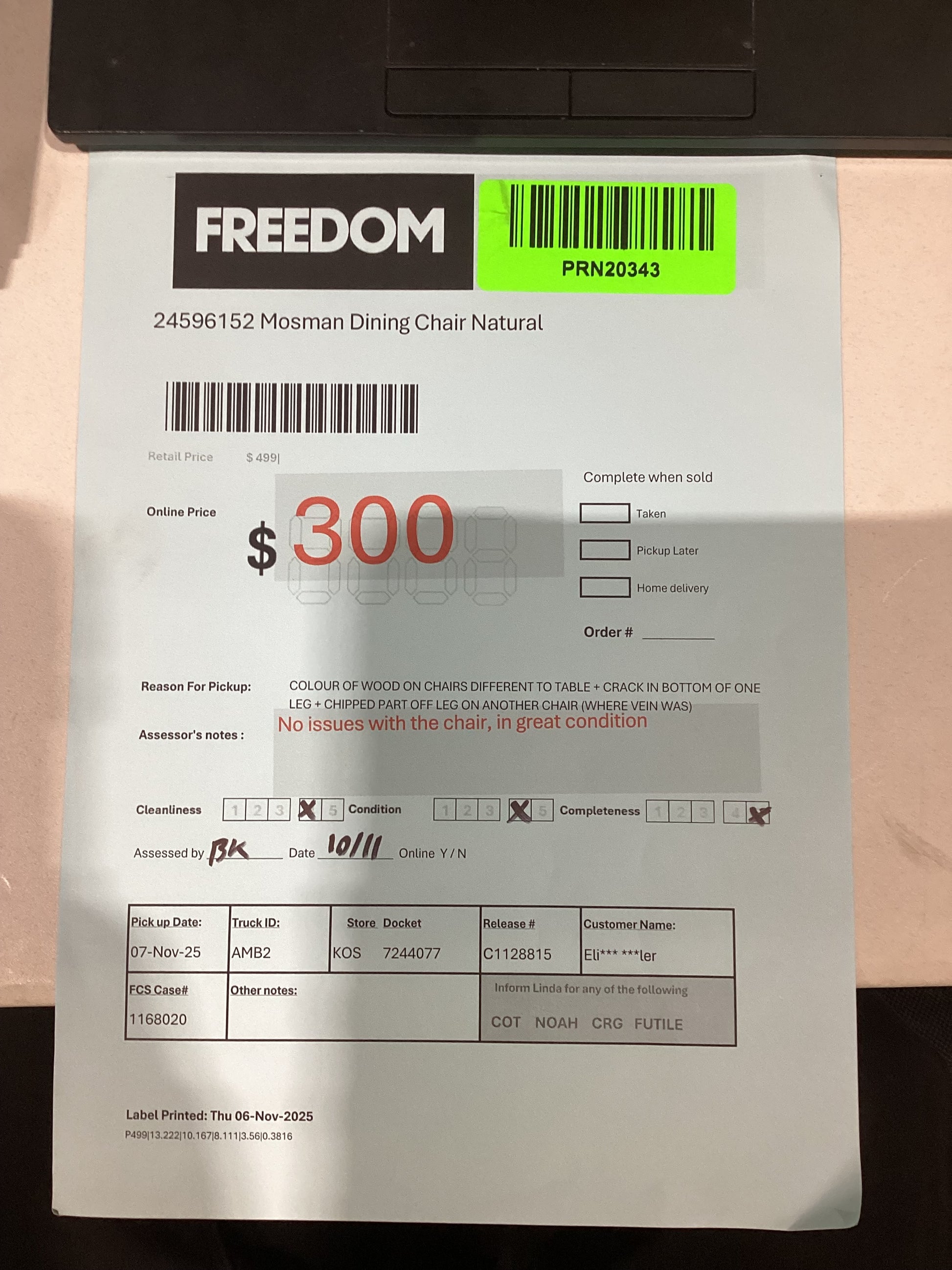 ASSESSOR NOTES: No Issues with chair, in great condition