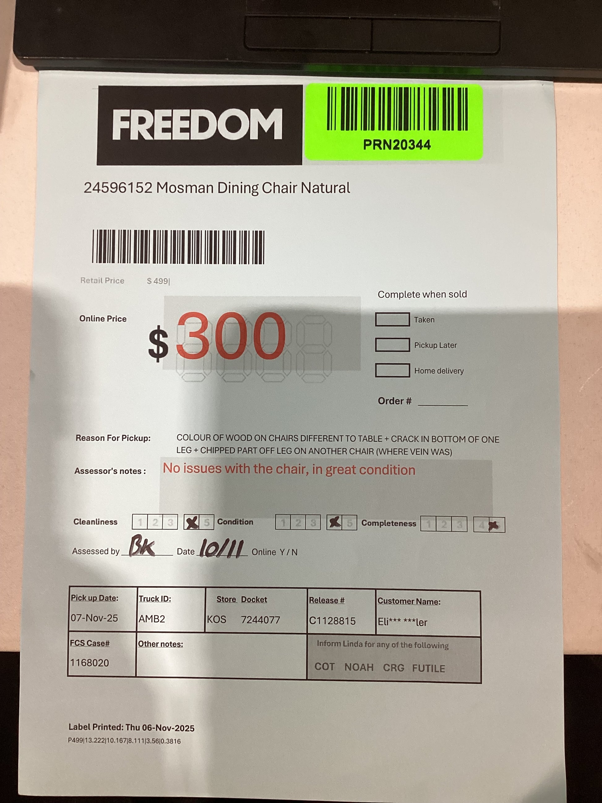ASSESSOR NOTES: No Issues with chair, in great condition