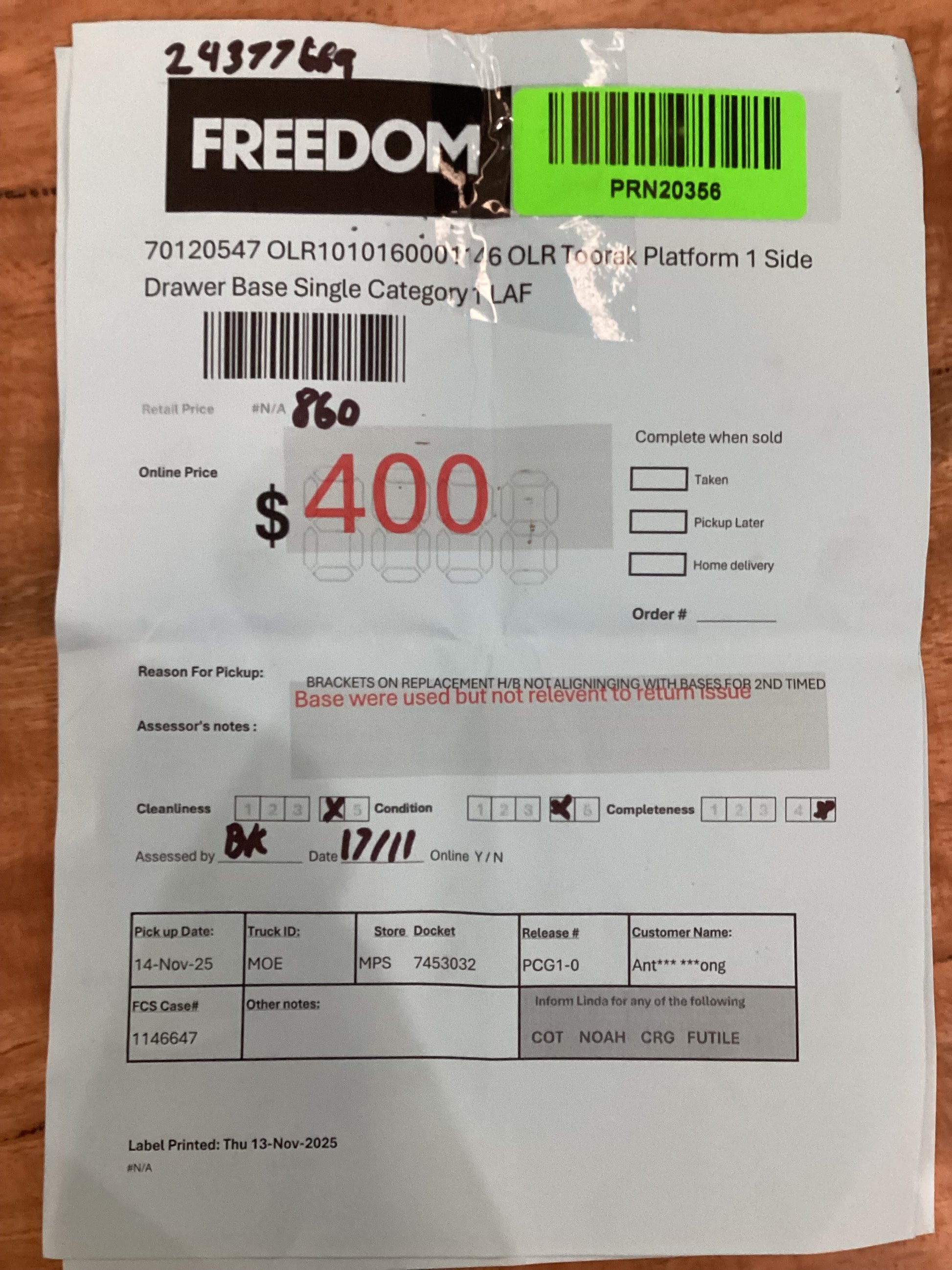 RETURN REASON:Â Brackes on replacement headboard not aligning
