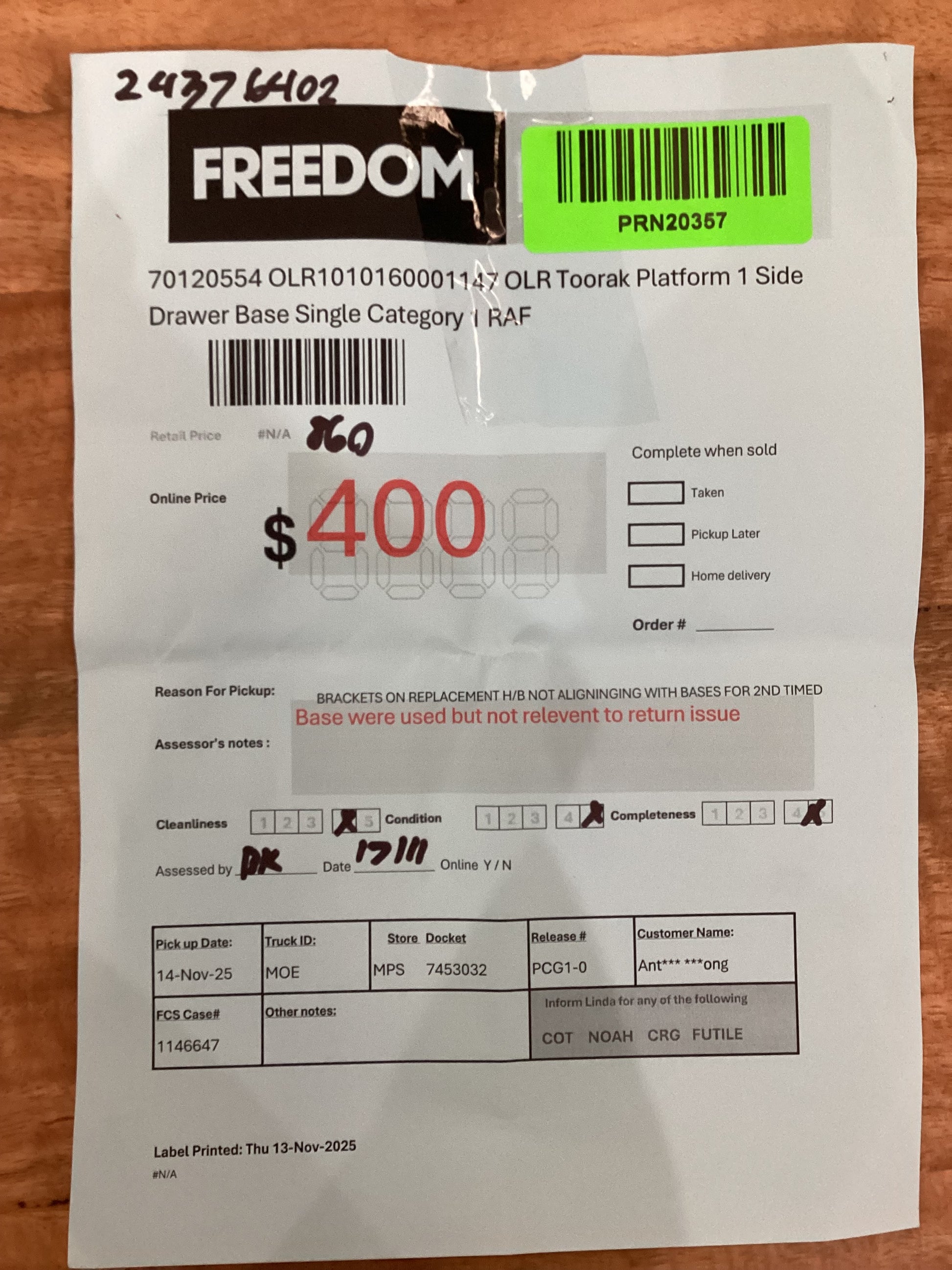 RETURN REASON:Â Â