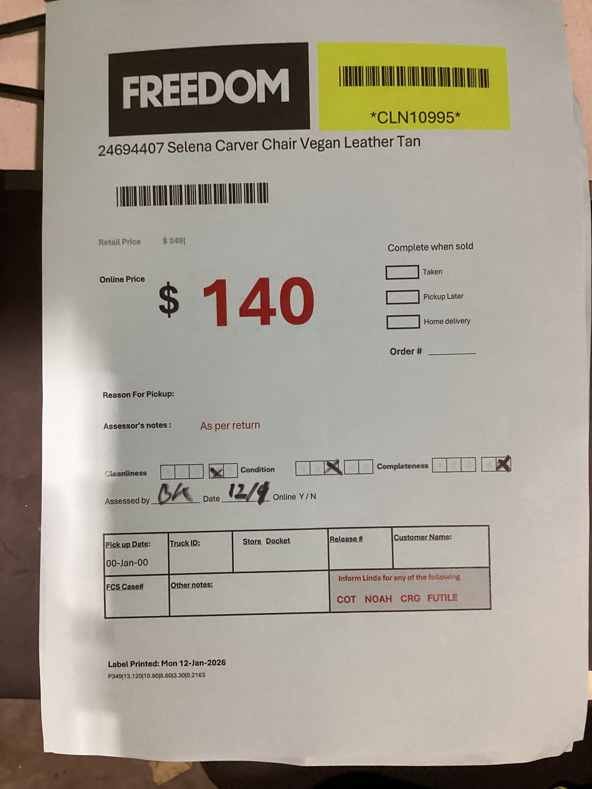 NSW CLN10995 Selena Carver Chair Vegan Leather Tan
