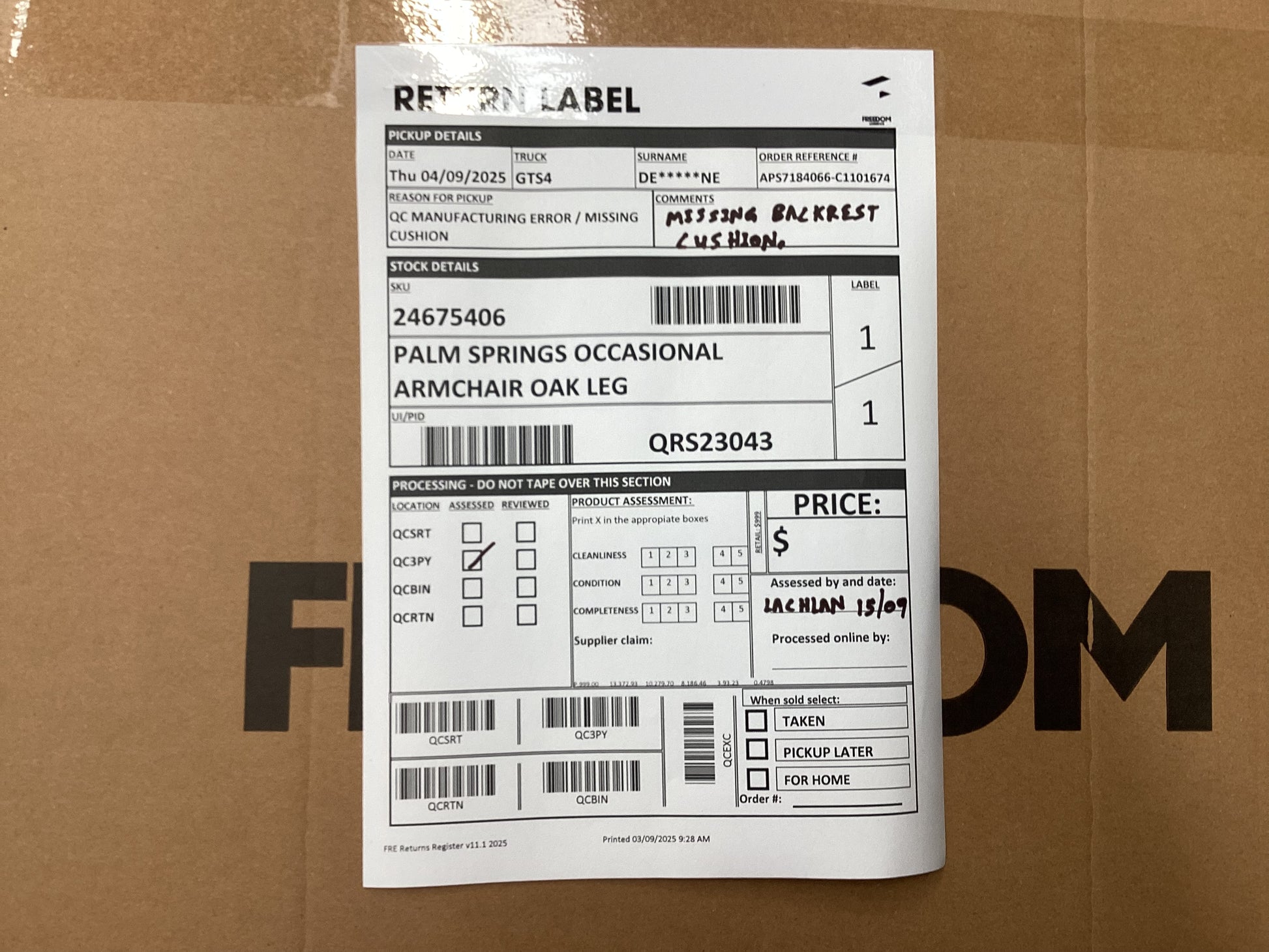 QLD QRS23043 Palm Springs Occasional Armchair Oak Leg