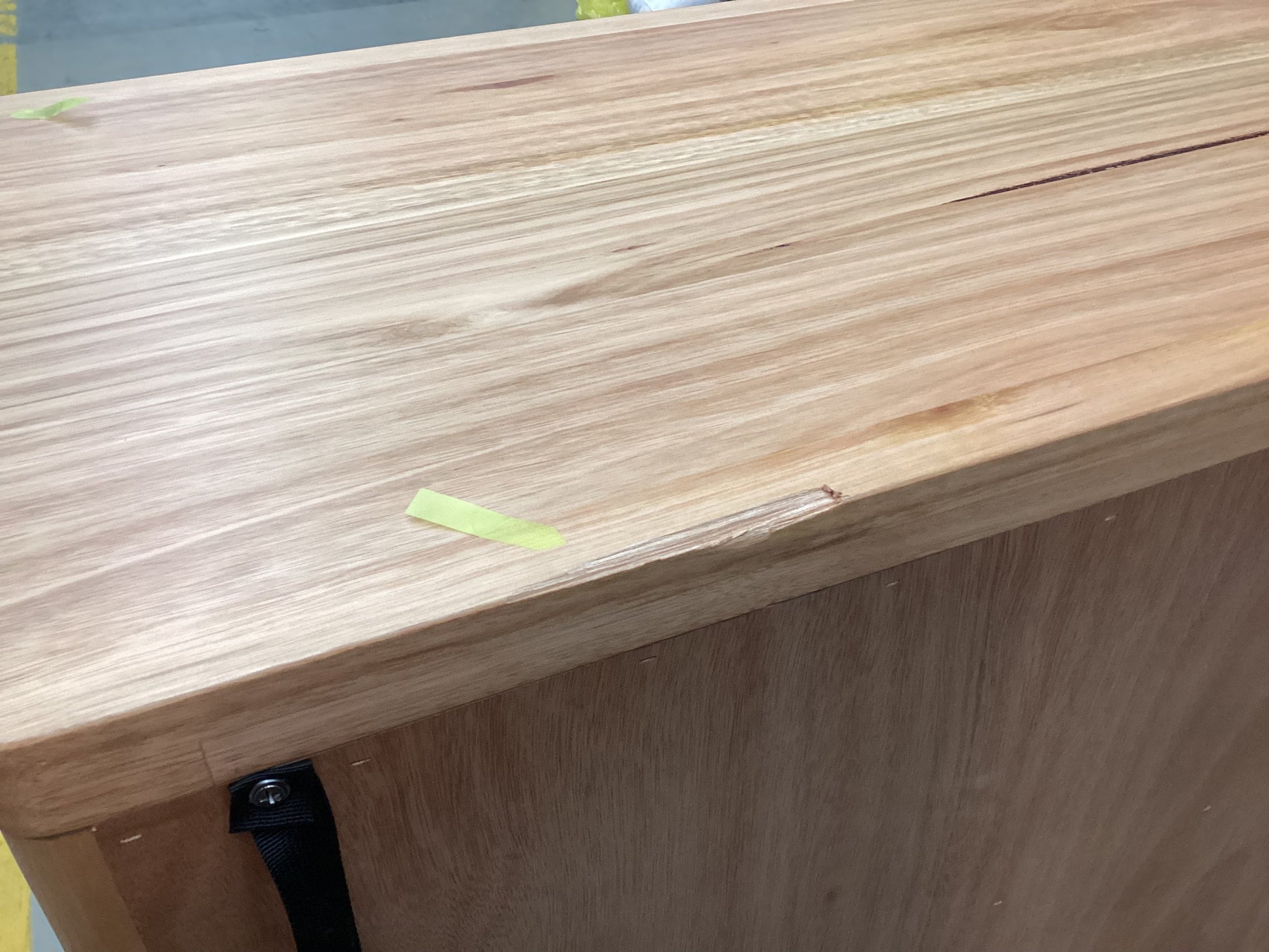 QC Top drawer wabbly, splinters on top back end.