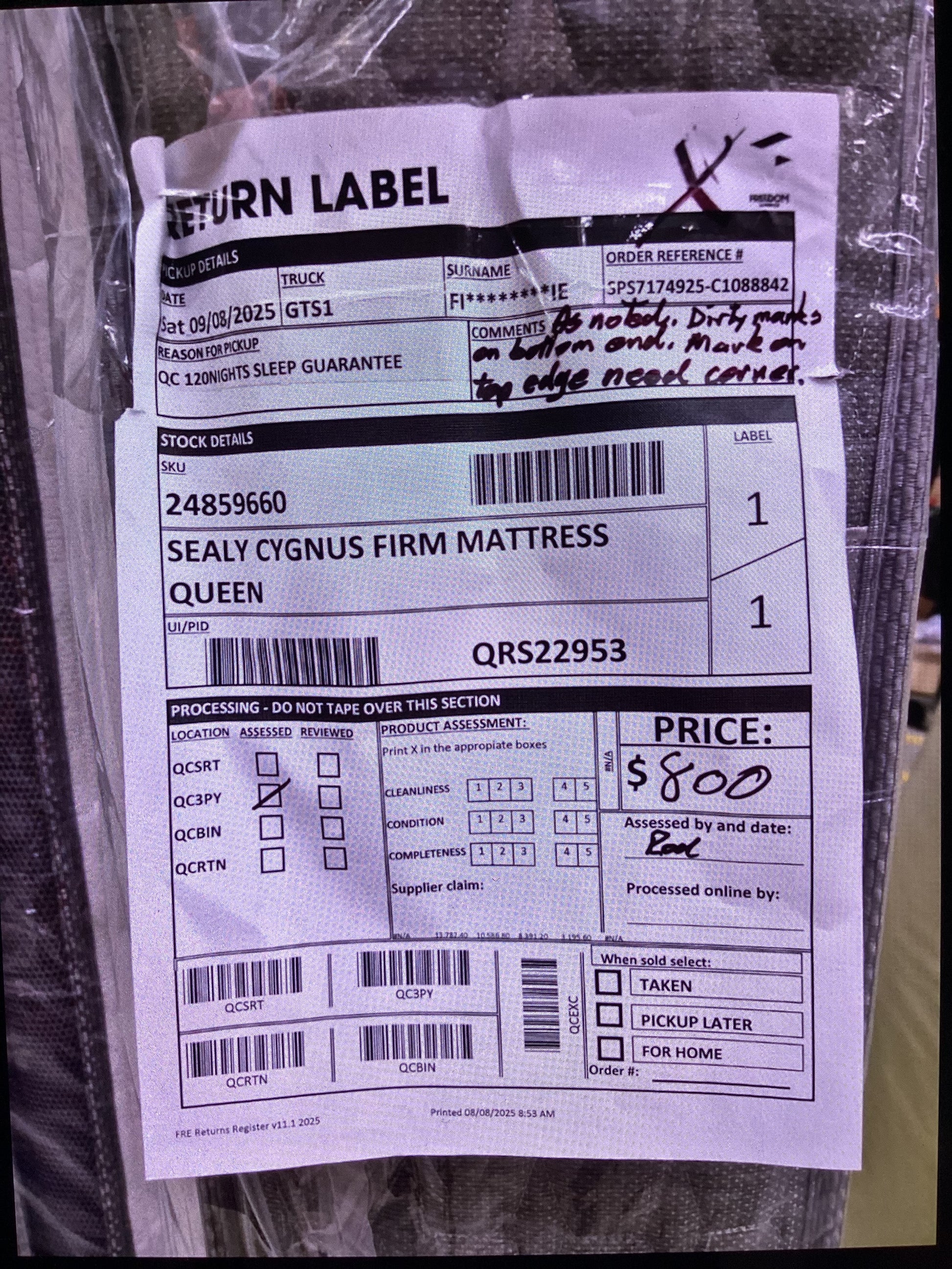 QC Sleep comfort guarantee / some marks on bottom and sides.
