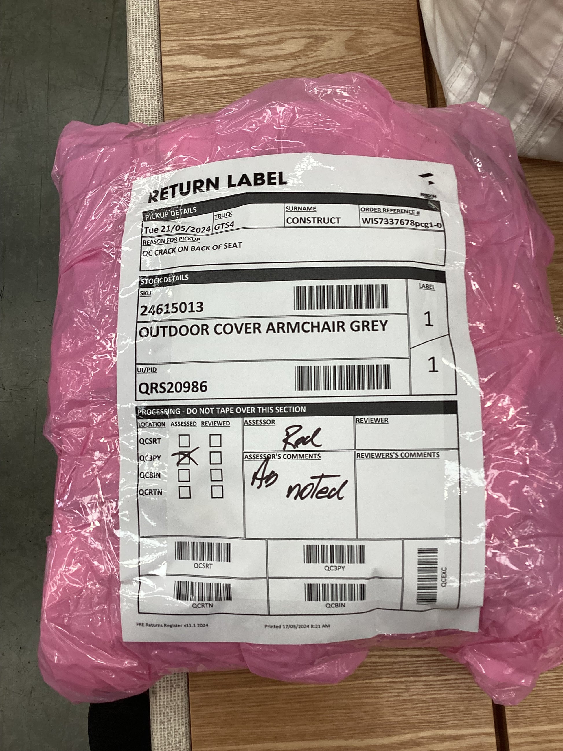Customer to view and assess during QLD warehouse sale on May 2-3, 2025